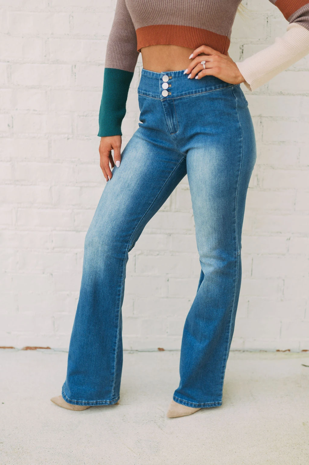 Experience ultimate comfort and style with Alexa High Rise Jeans. Perfectly crafted from a soft and durable fabric, these jeans feature a medium wash, high rise fit, and slightly flared legs for an iconic look. Elevate your wardrobe with Alexa High Rise Jeans today!