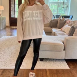 Look sleek and stylish in the Camille faux leather leggings. These chic leggings feature soft, stretchy fabric and a waist-hugging high-rise silhouette. Ready to take on the night with an edgy allure that can’t be denied? Put on the Camille Faux Leather Leggings and strut your stuff!