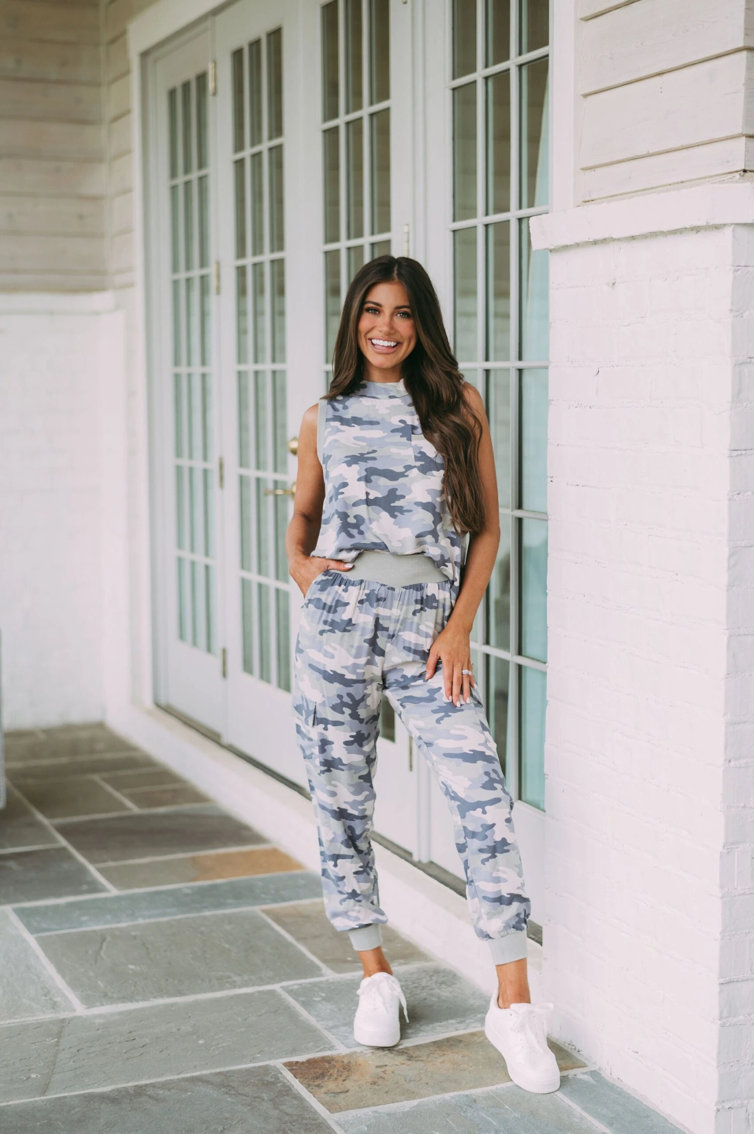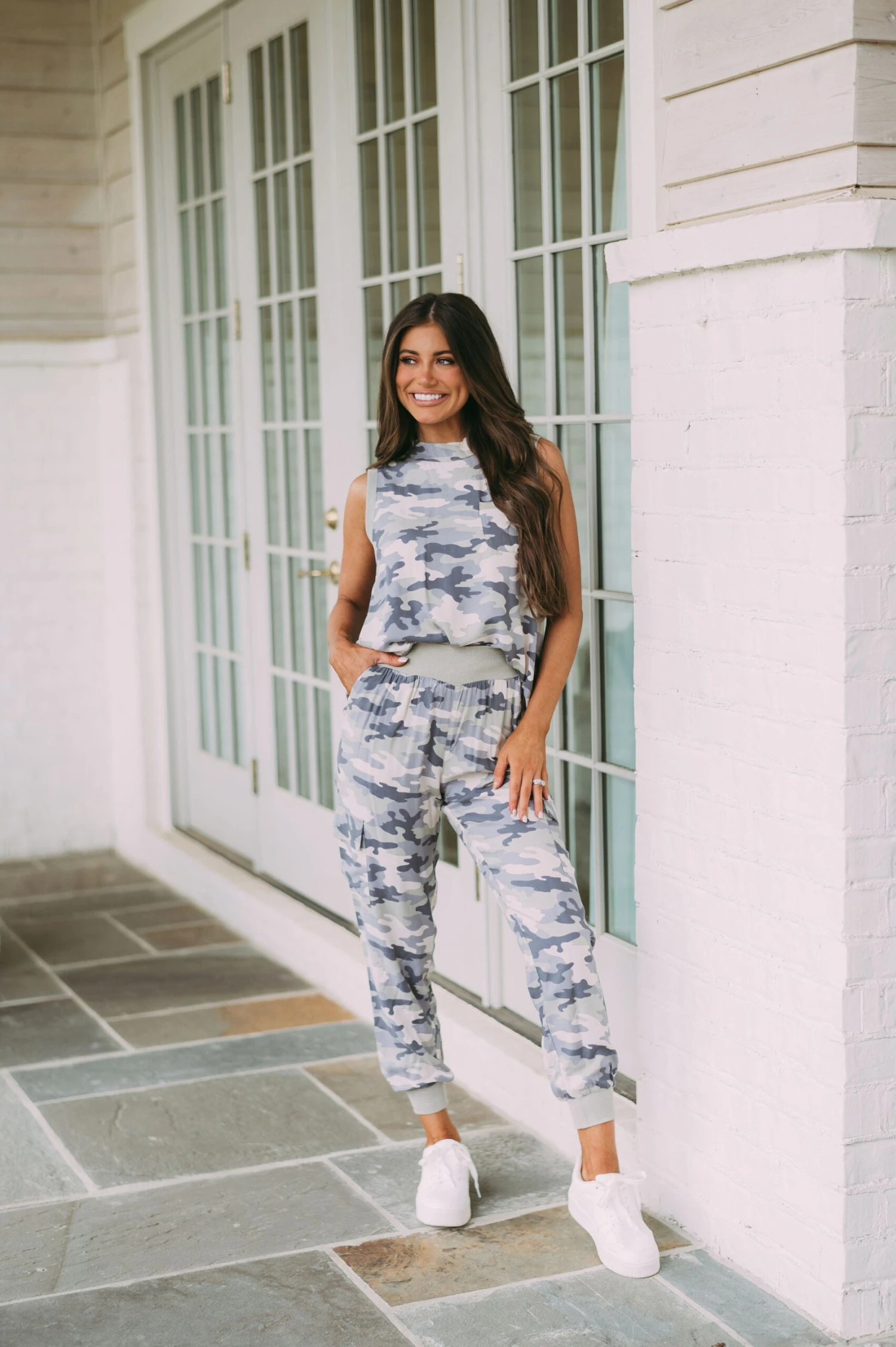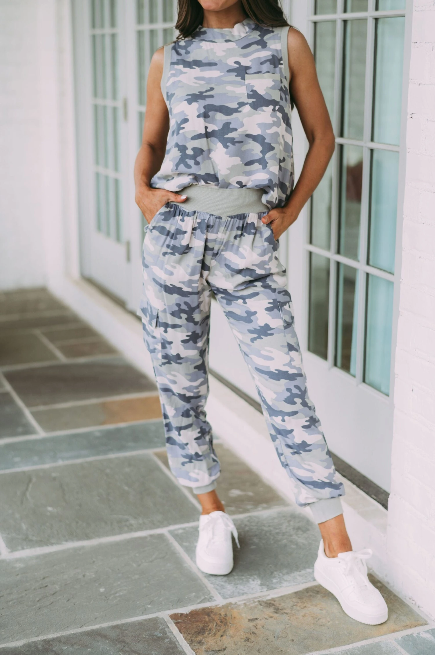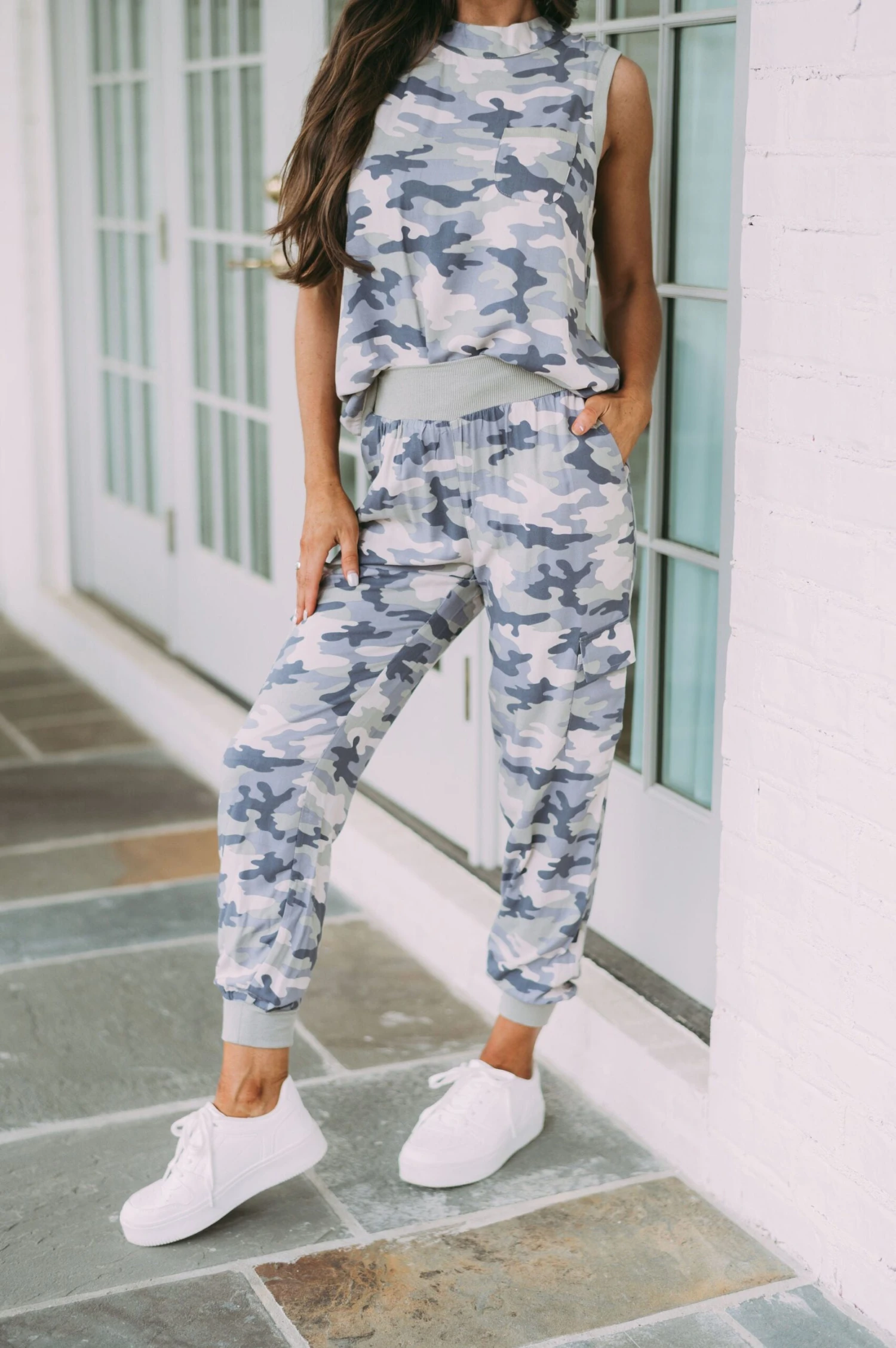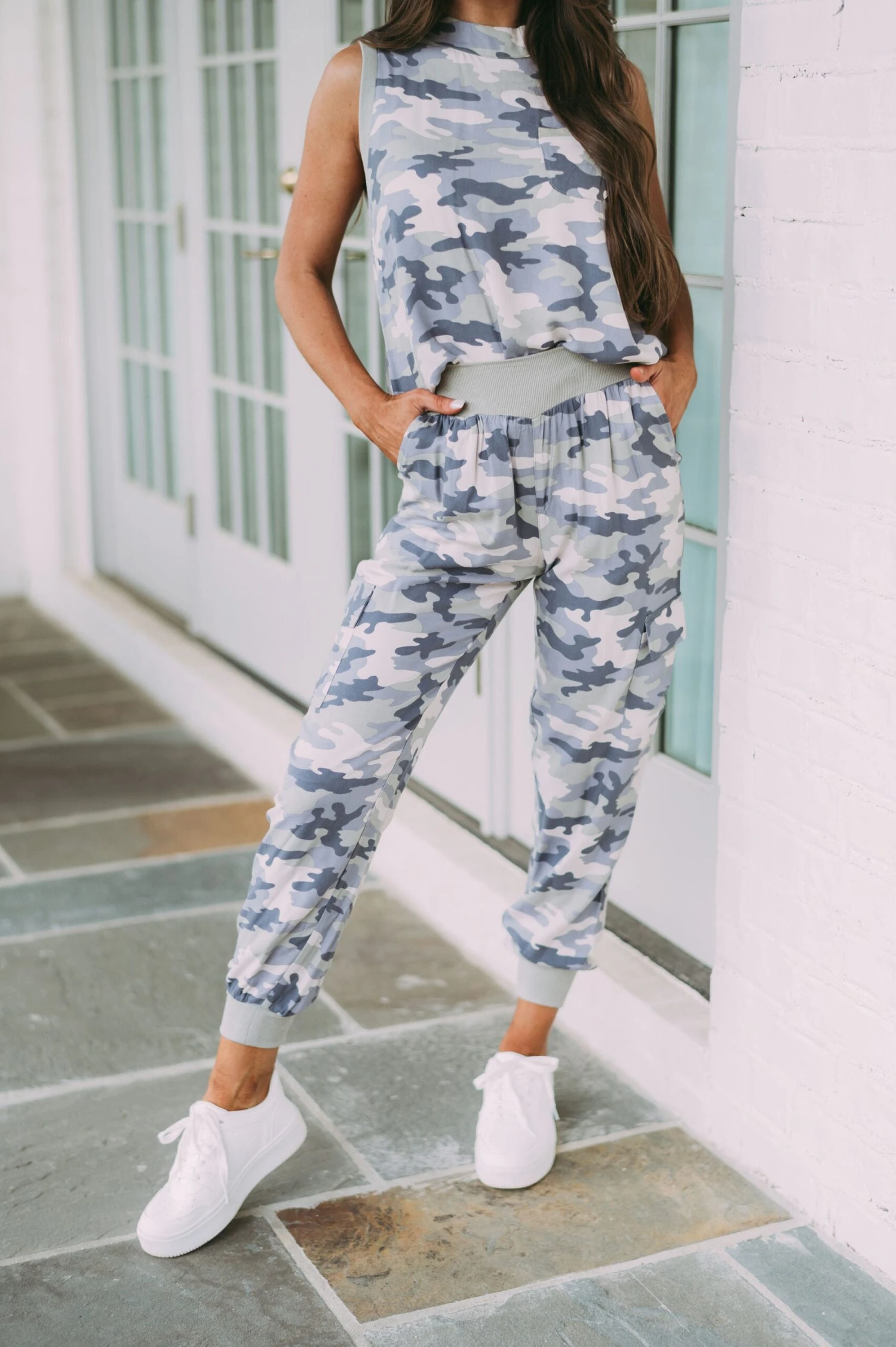 Our Camo Printed Jogger Pants combine classic camo style with an updated look. Stylishly designed with a high waistline and green ribbed fabric, these pants also feature pockets for convenience. The perfect addition to any wardrobe!