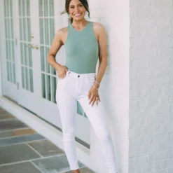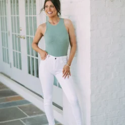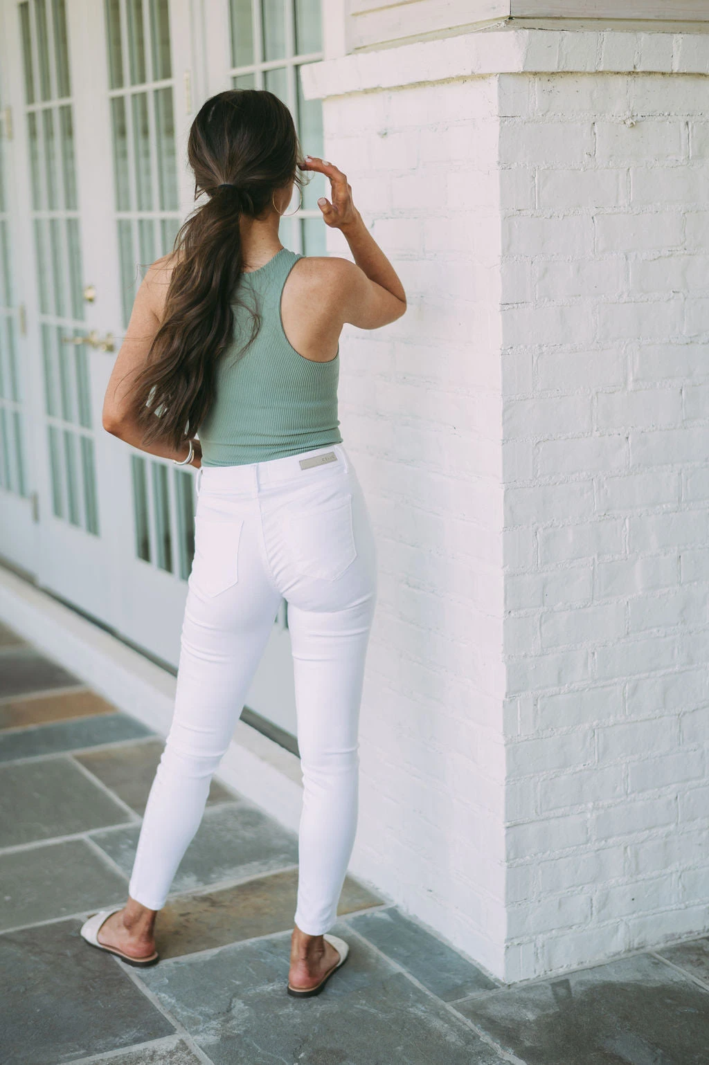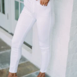 Our Classic Skinnies in White are a timeless wardrobe must-have. Featuring a mid-rise fit and finished bottom hem, these white jeans offer a flattering silhouette and comfortable feel. A wardrobe staple you’ll love season after season!