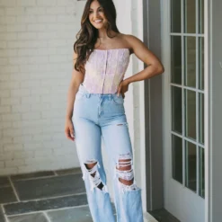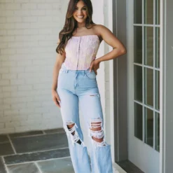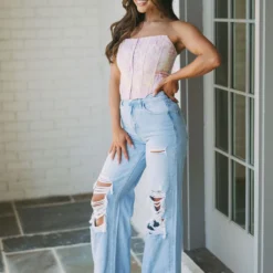 Enjoy modern style and timeless quality with these Cleo Destroyed Jeans. Crafted from a light wash vintage denim and featuring a high waistline as well as destroyed detailing, these jeans will give you a unique, stylish look that will never go out of fashion!