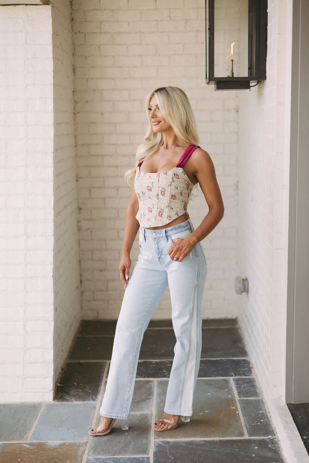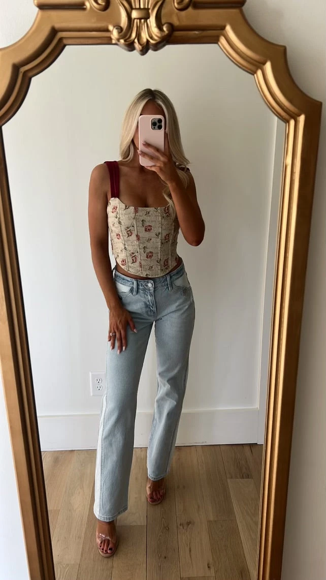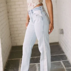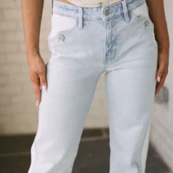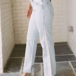 Make a statement in these Contrasted Button Accent Straight Jeans! The light wash color, contrasted sides, and high waistline have an effortlessly cool look, while the button accents add a bold touch!