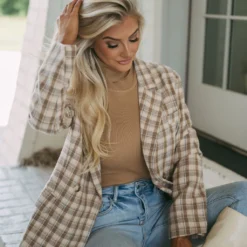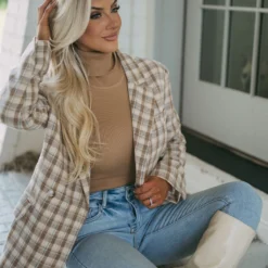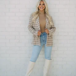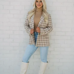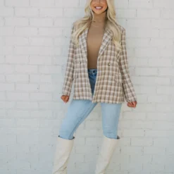 Be the first to review “Cozy Plaid Blazer- Taupe” Cancel reply