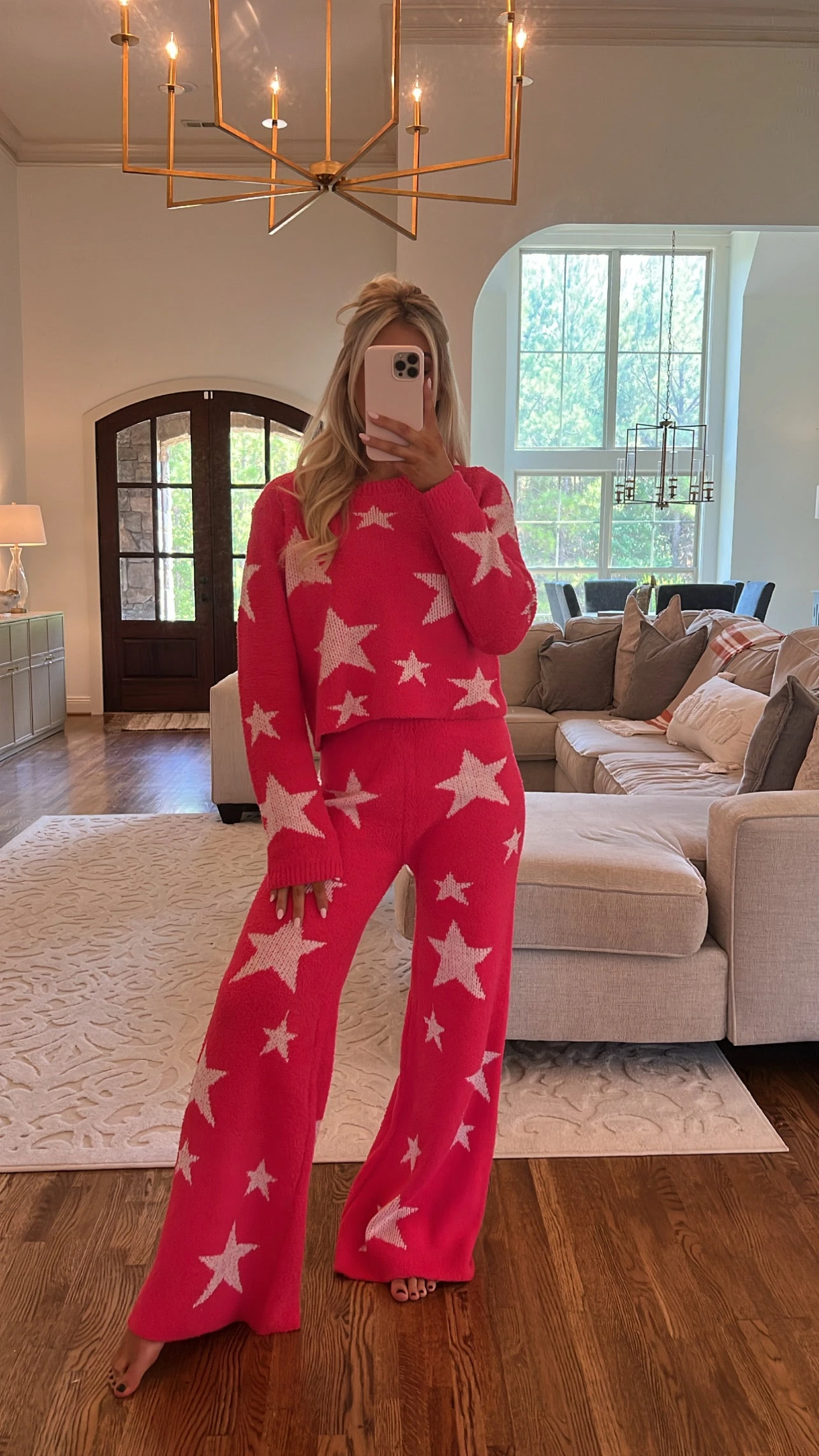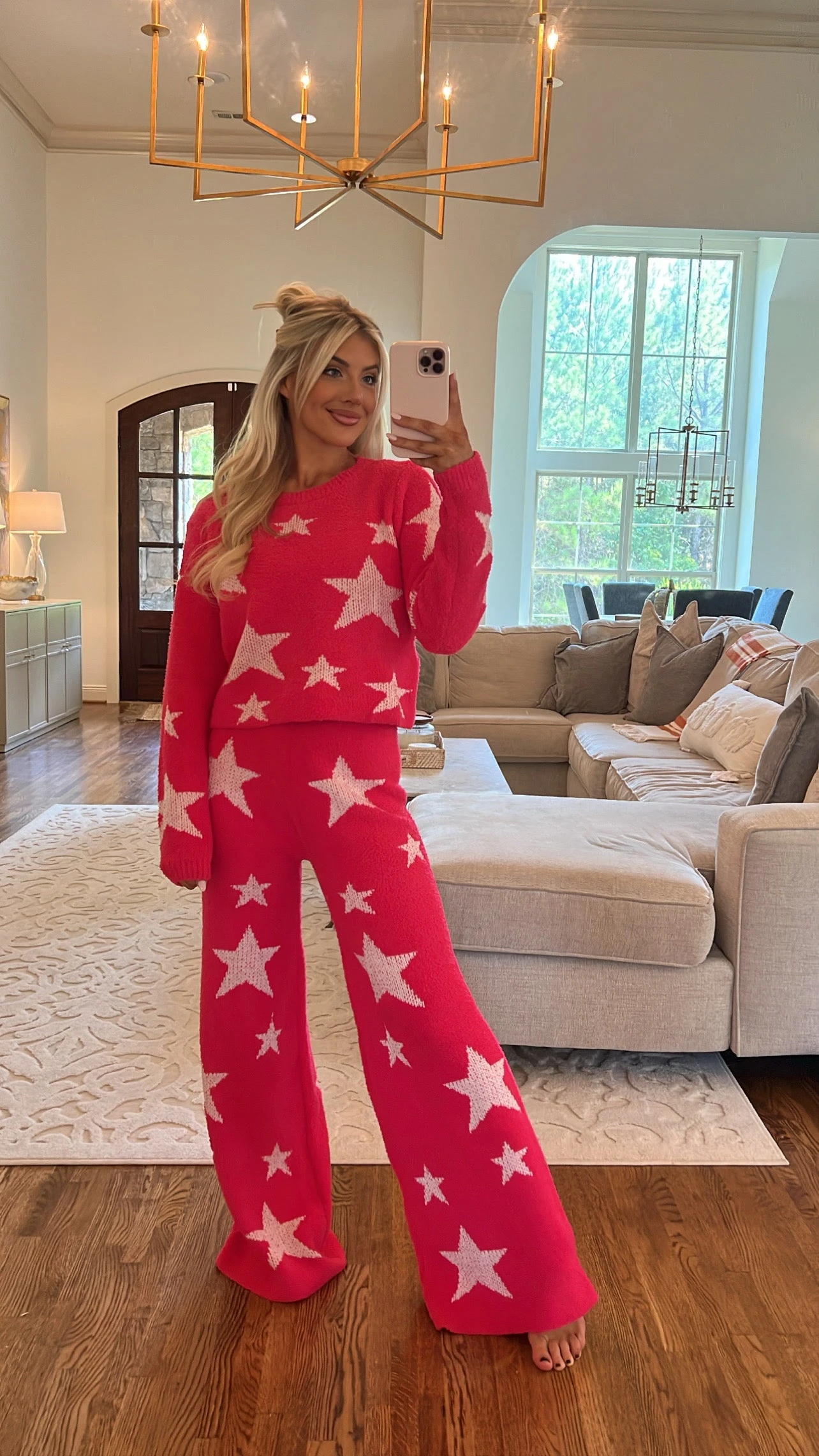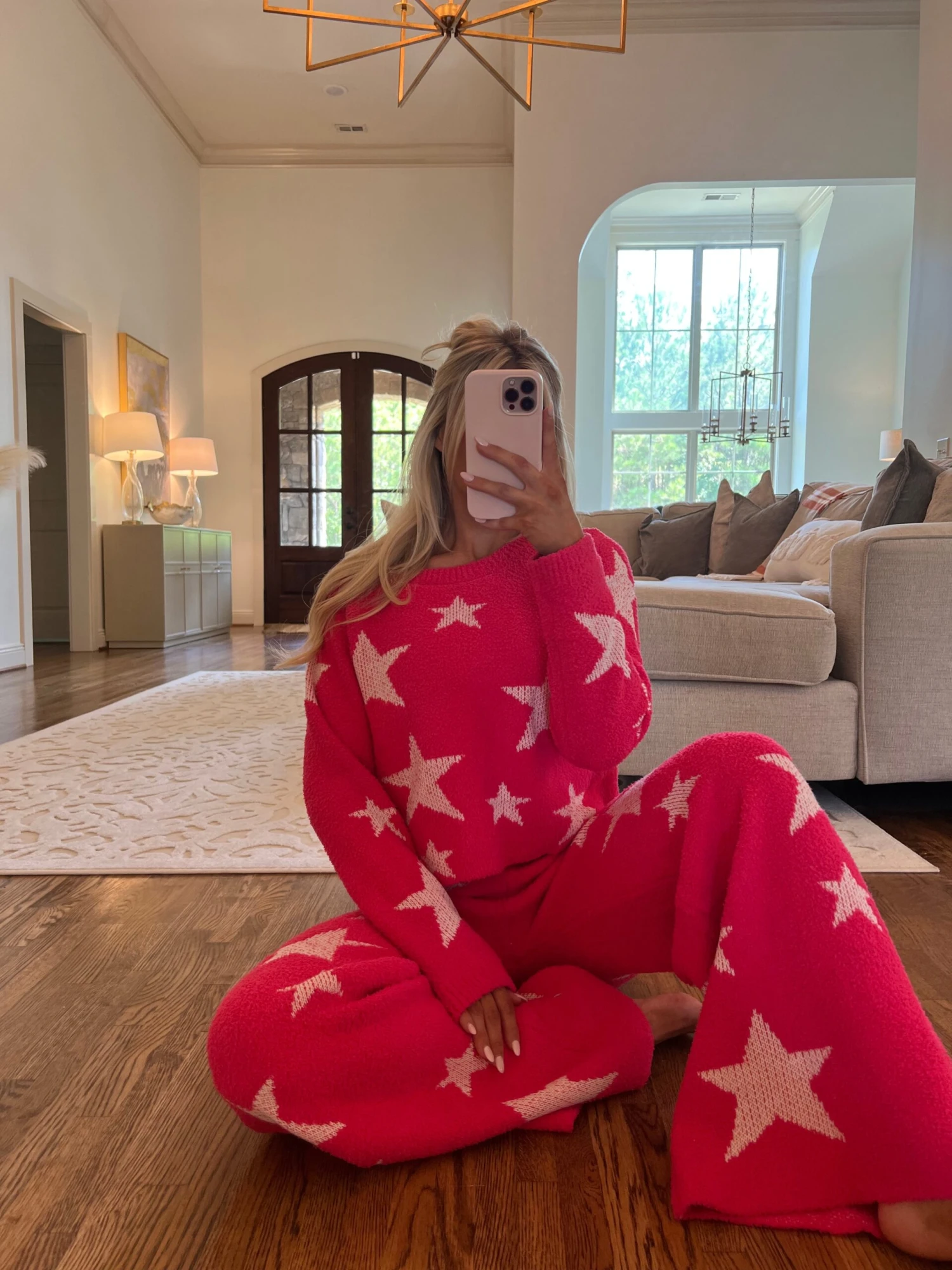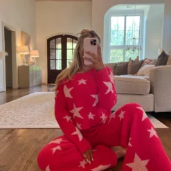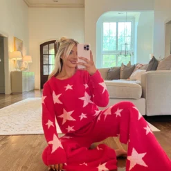 Cozy Star Print Pants Set- Hot Pink