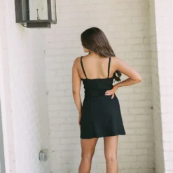Elevate your style with this timeless black mini dress featuring beautiful dainty rhinestone details. Perfect for any special occasion, this chic piece has a zipper closure back and a flattering fit. Stand out and shine in this exquisite piece!