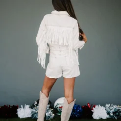 Be the first to review “Denim Fringe Accented Romper-White” Cancel reply