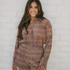 - Model is 5’5″ with a 26″ waist and 37″ hips wearing a size small.