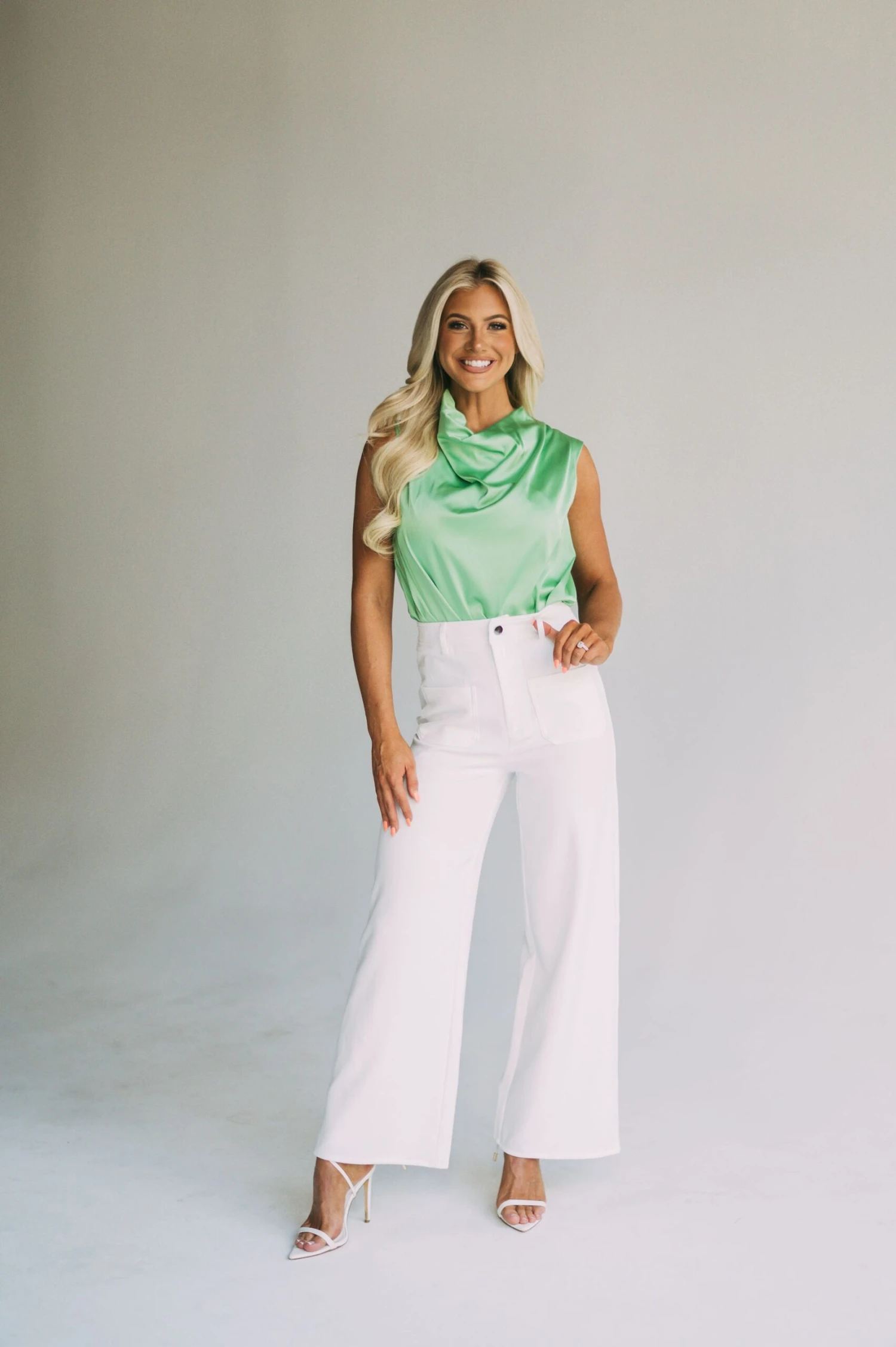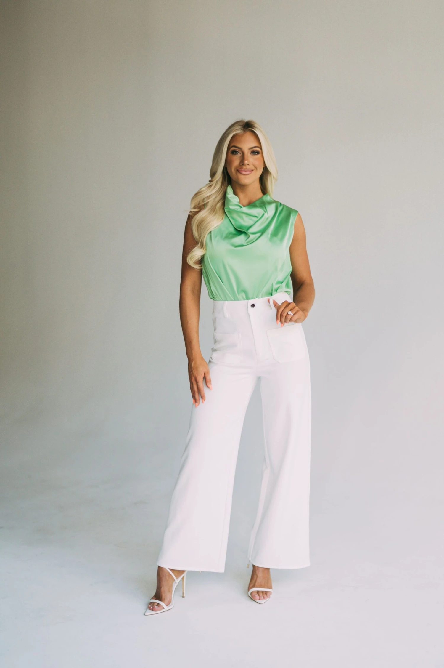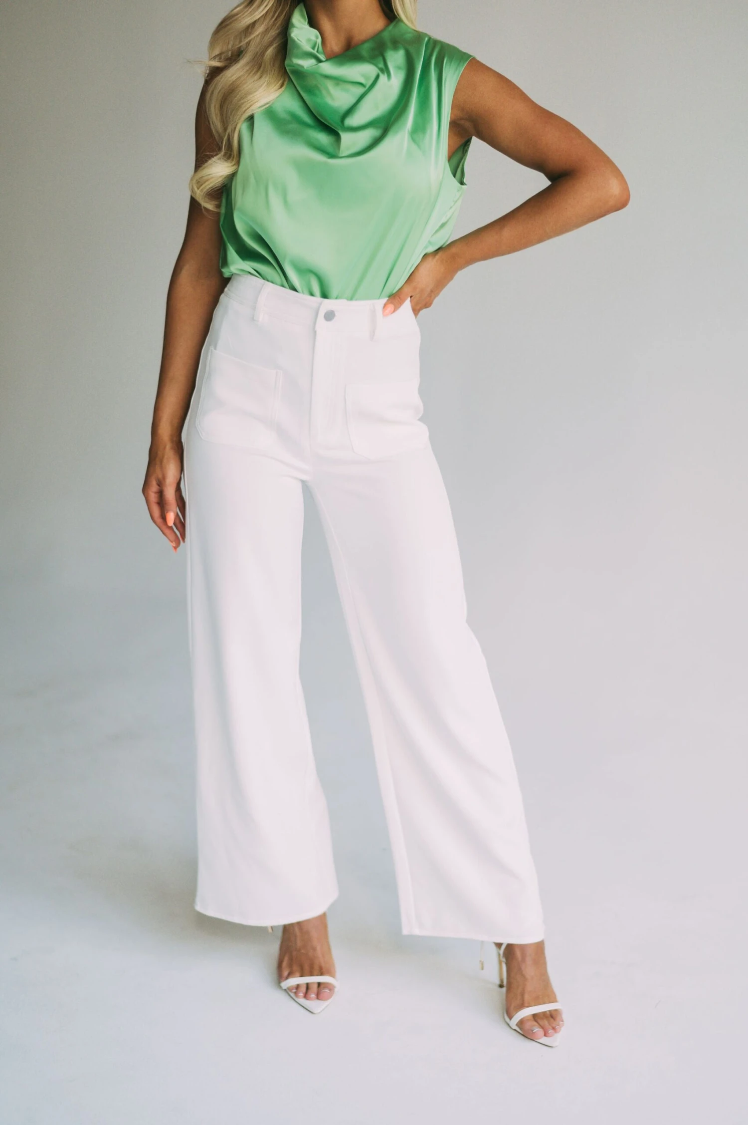 Designed for maximum comfort, these white wide-leg pants feature a flattering high-waisted fit and front pockets. The crop bottom hem and quality zipper/button closure provide the perfect finishing touch. Ideal for the modern woman’s wardrobe.