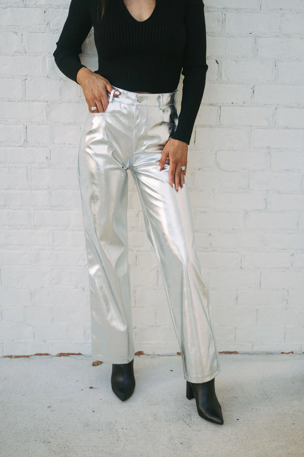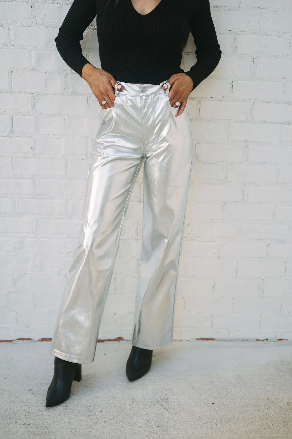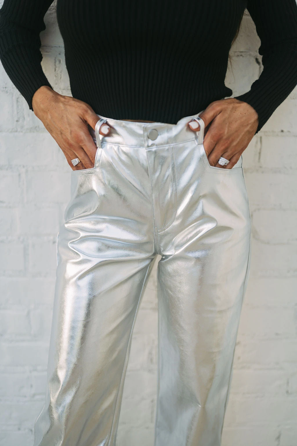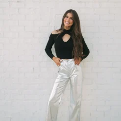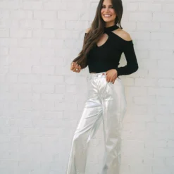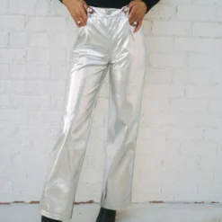 Make a statement with our Houston Metallic Pants! These silver metallic faux leather pants feature a high-waisted fit and straight legs, creating a sleek and timeless silhouette that’ll keep you looking and feeling confident. Stand out and shine, no matter the occasion!