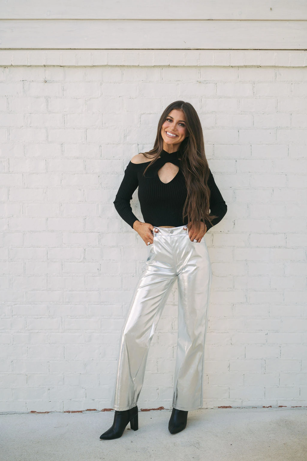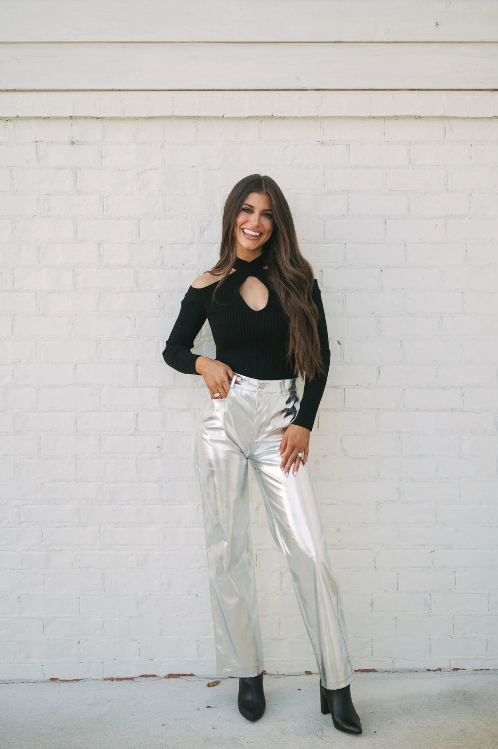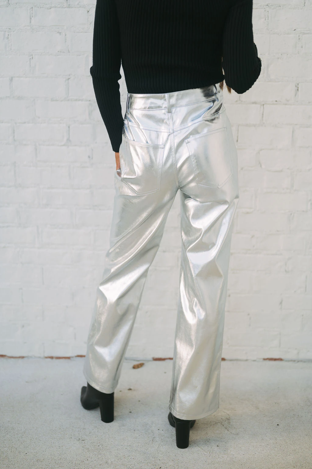 Make a statement with our Houston Metallic Pants! These silver metallic faux leather pants feature a high-waisted fit and straight legs, creating a sleek and timeless silhouette that’ll keep you looking and feeling confident. Stand out and shine, no matter the occasion!