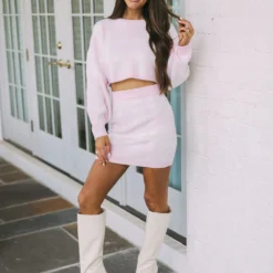 Look absolutely incredible in this Kirstin Plaid Skirt Set! The eye-catching pink and white plaid will make a statement for any occasion. Crafted from a cozy sweater knit fabric, the cropped sweater and high waisted skirt create a look you’ll love!