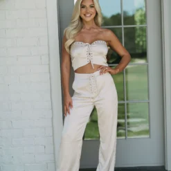 Be the first to review “Lace Up Crop Top & Pants Set-Beige” Cancel reply