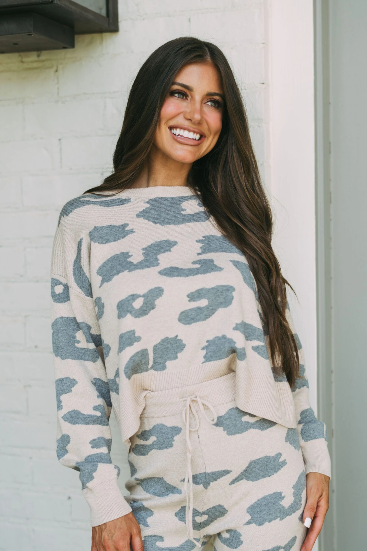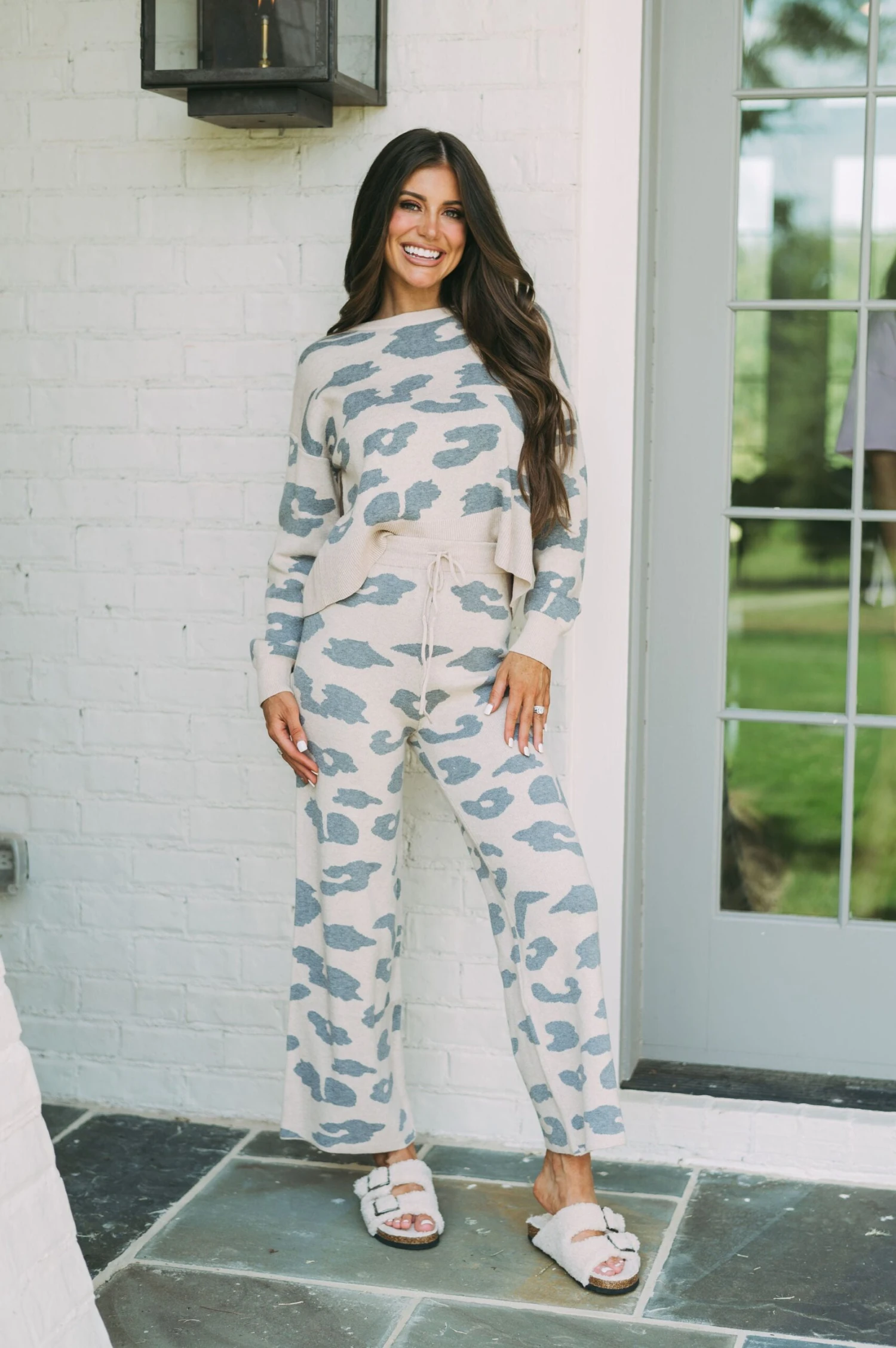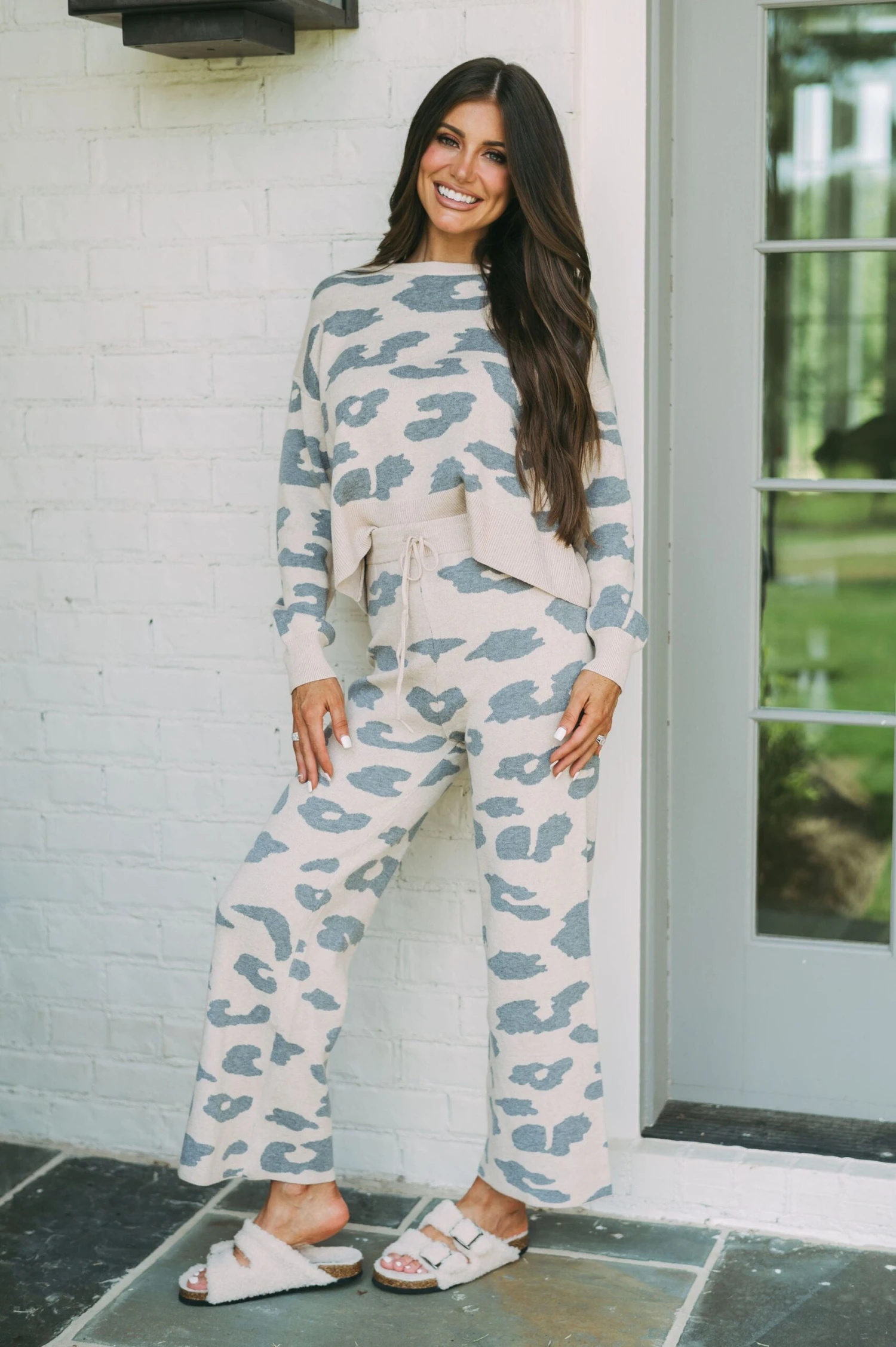 Experience luxury loungewear with our Leopard Lounge Set- Cream/Grey. With a striking cream and grey leopard print, ribbed trim, cropped pants with a drawstring waist, and stretchy fabric, this two piece set will have you feeling stylish and comfortable. Treat yourself to a luxurious set that you can take from the couch to the streets!