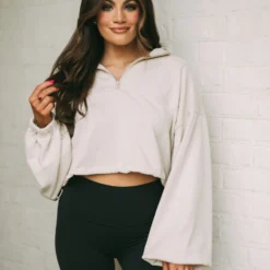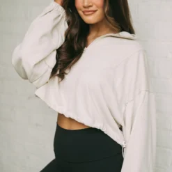 This Luna Beige Zip Pullover is perfect for outdoor wear. Featuring a collared neckline, zip up front and balloon sleeves, plus an adjustable cinched waistband for a comfortable fit. Enjoy the outdoors with the perfect balance of fashion and function.