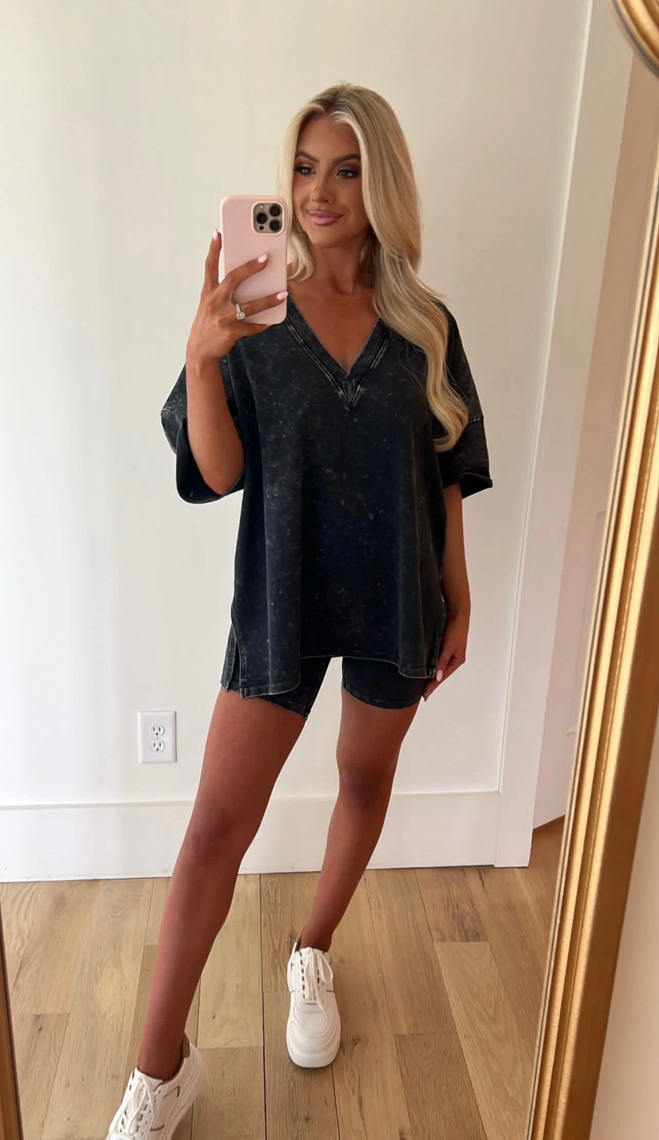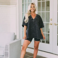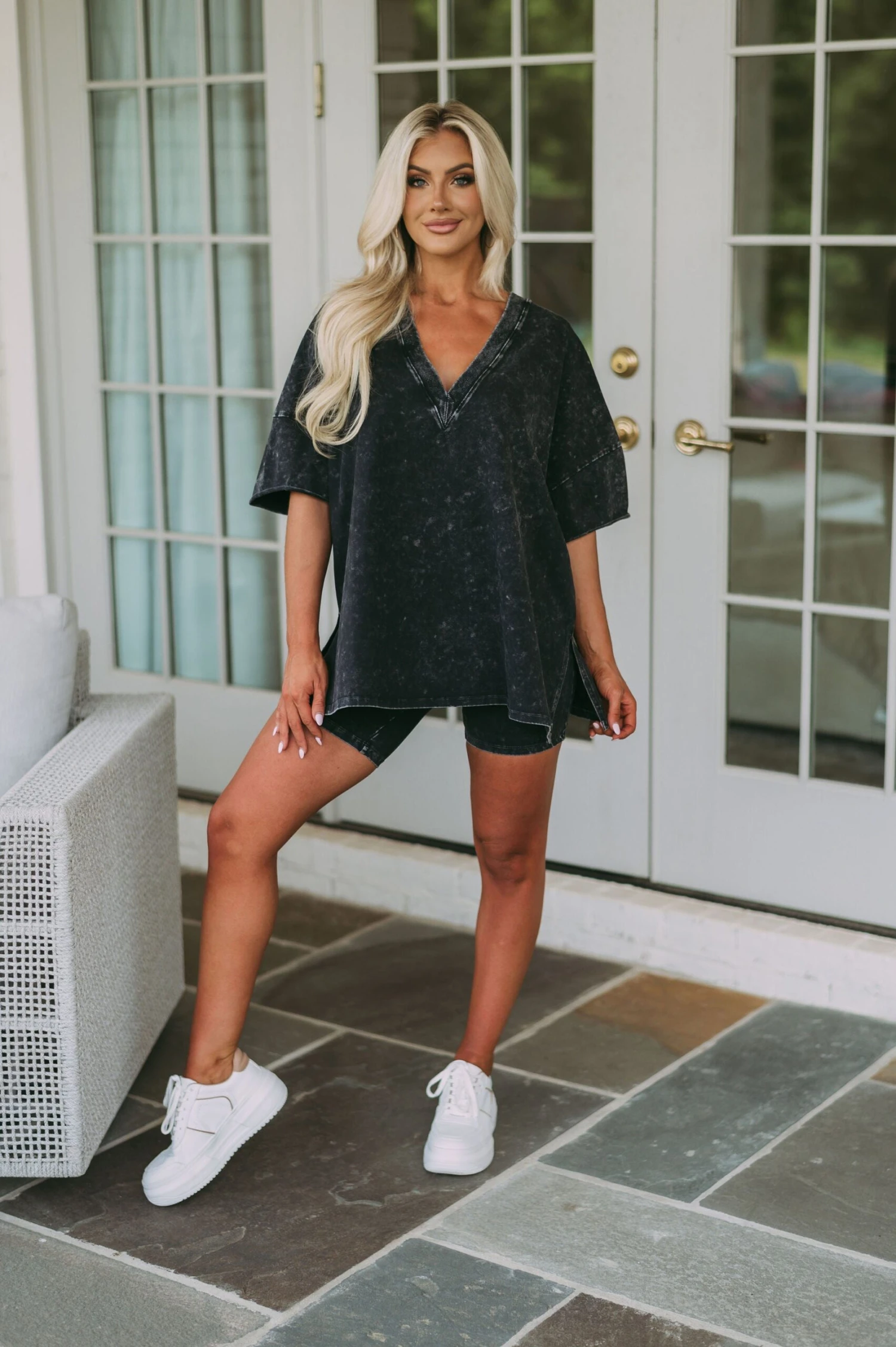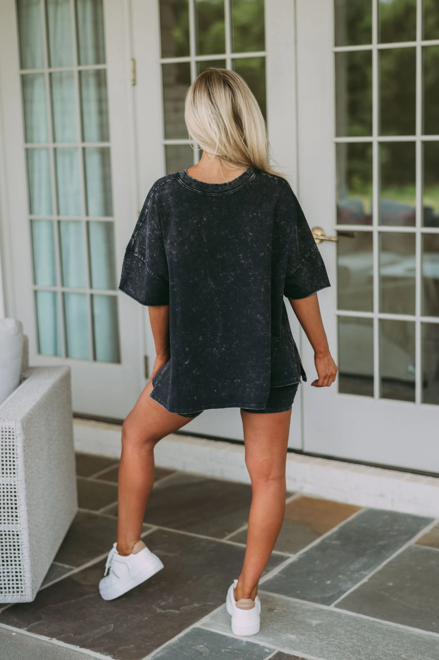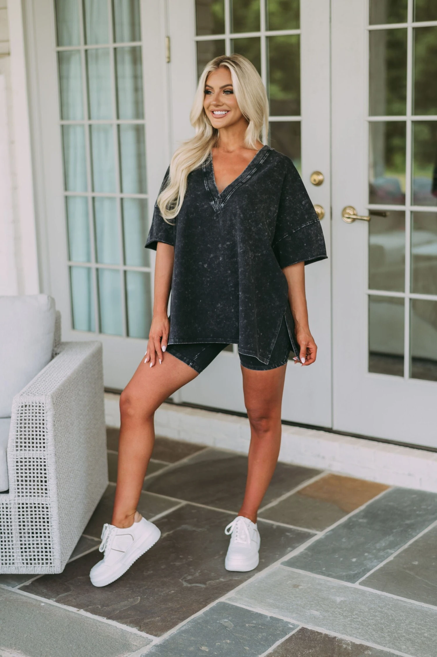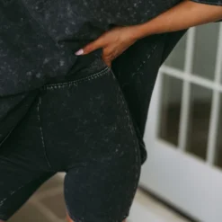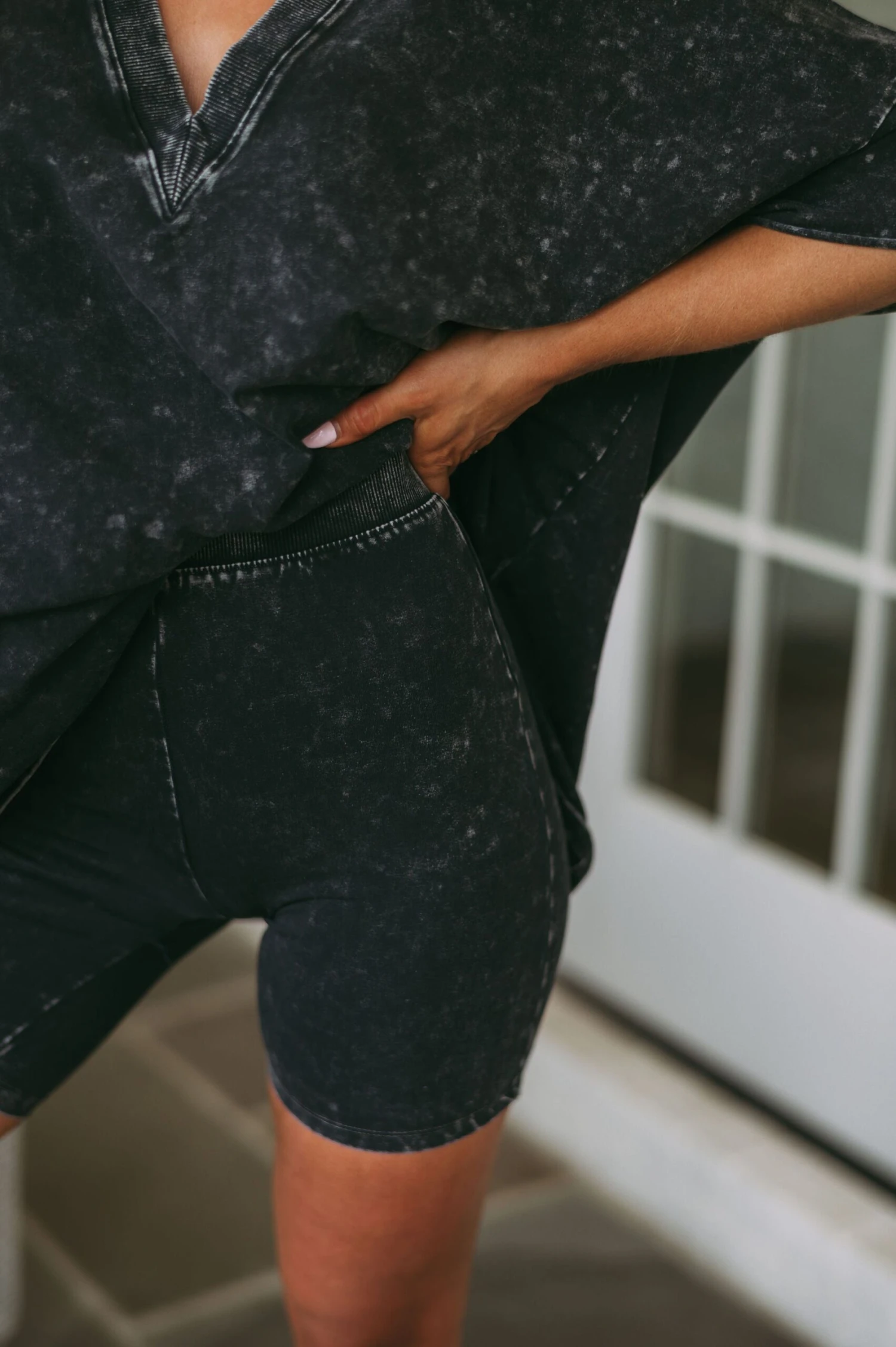 These mineral washed biker shorts in charcoal are a must-have for any wardrobe. With an elastic high waistband and comfortable fit, they are perfect for any outdoor activity or lounging. Feel secure and stylish in these simple yet stylish shorts!