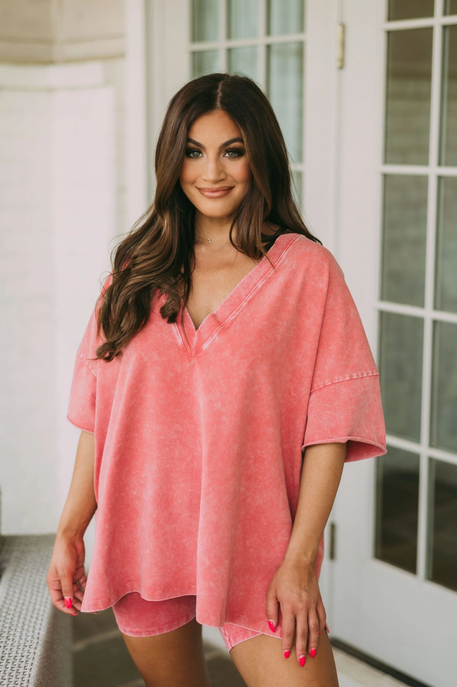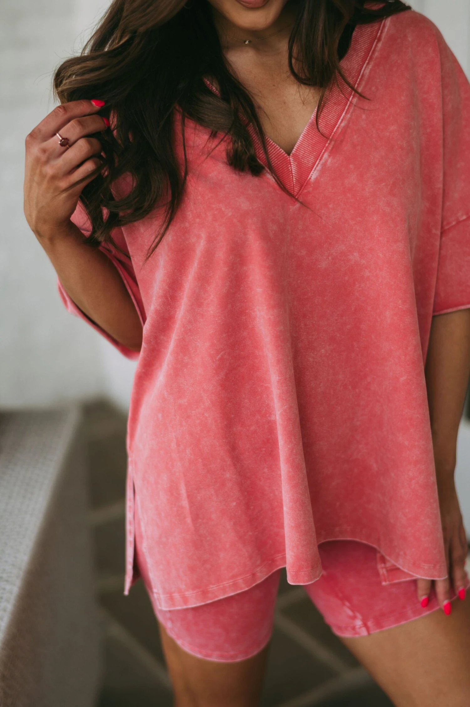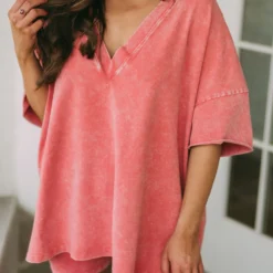 Be the first to review “Mineral Washed V-Neck Top-Clay” Cancel reply