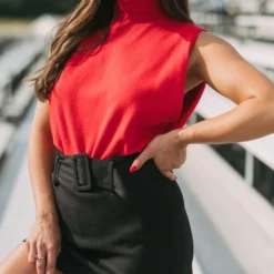 Rock a red-hot look this season with this muscle sleeve sweater! Slip into the mock neck and feel like an absolute powerhouse with the popping red hue and ribbed bottom hem. Let your arms flex and your style soar!