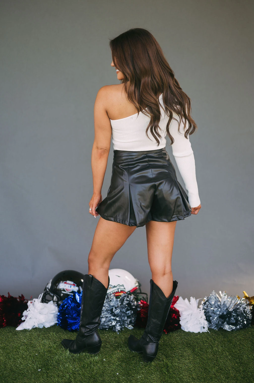 - Look effortlessly stylish with Parker Faux Leather Shorts! These amazing high waisted shorts feature a sleek and trendy faux-leather material and feature stylish pleated detailing, giving you just the right amount of edge. Embrace effortless fashion and an edgy vibe with these shorts!
