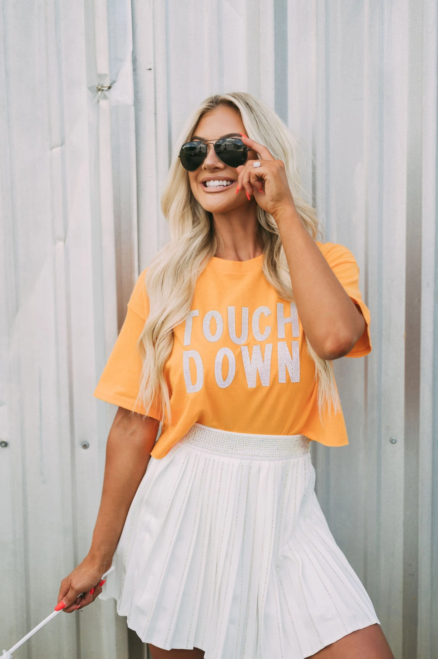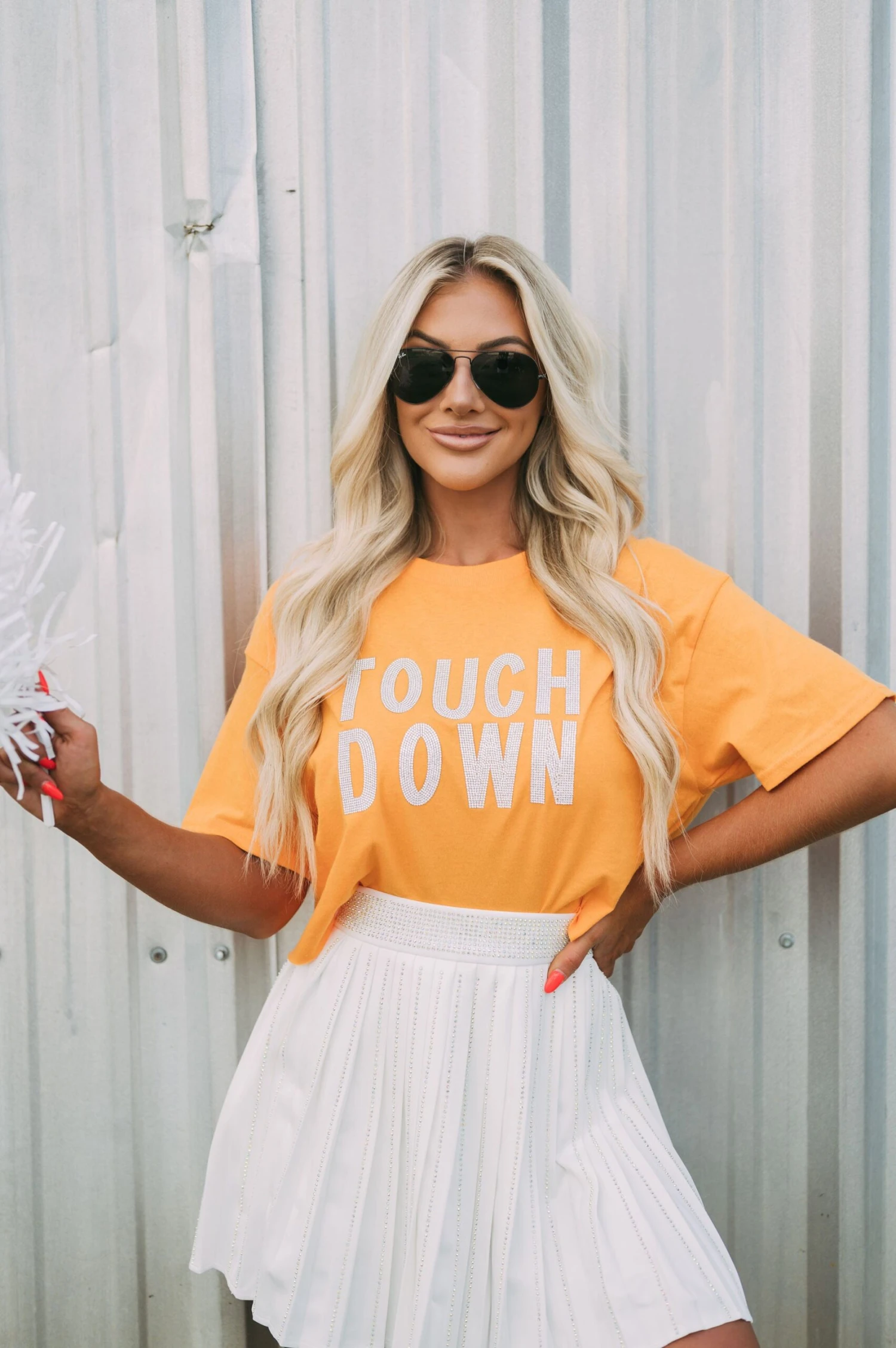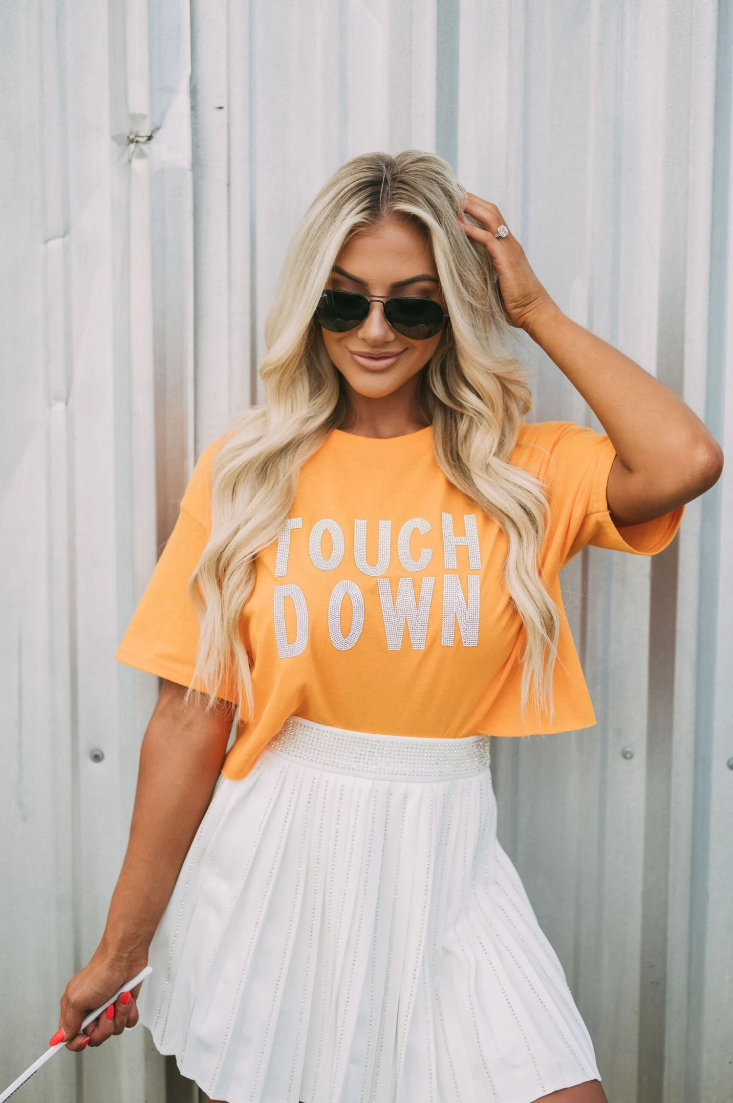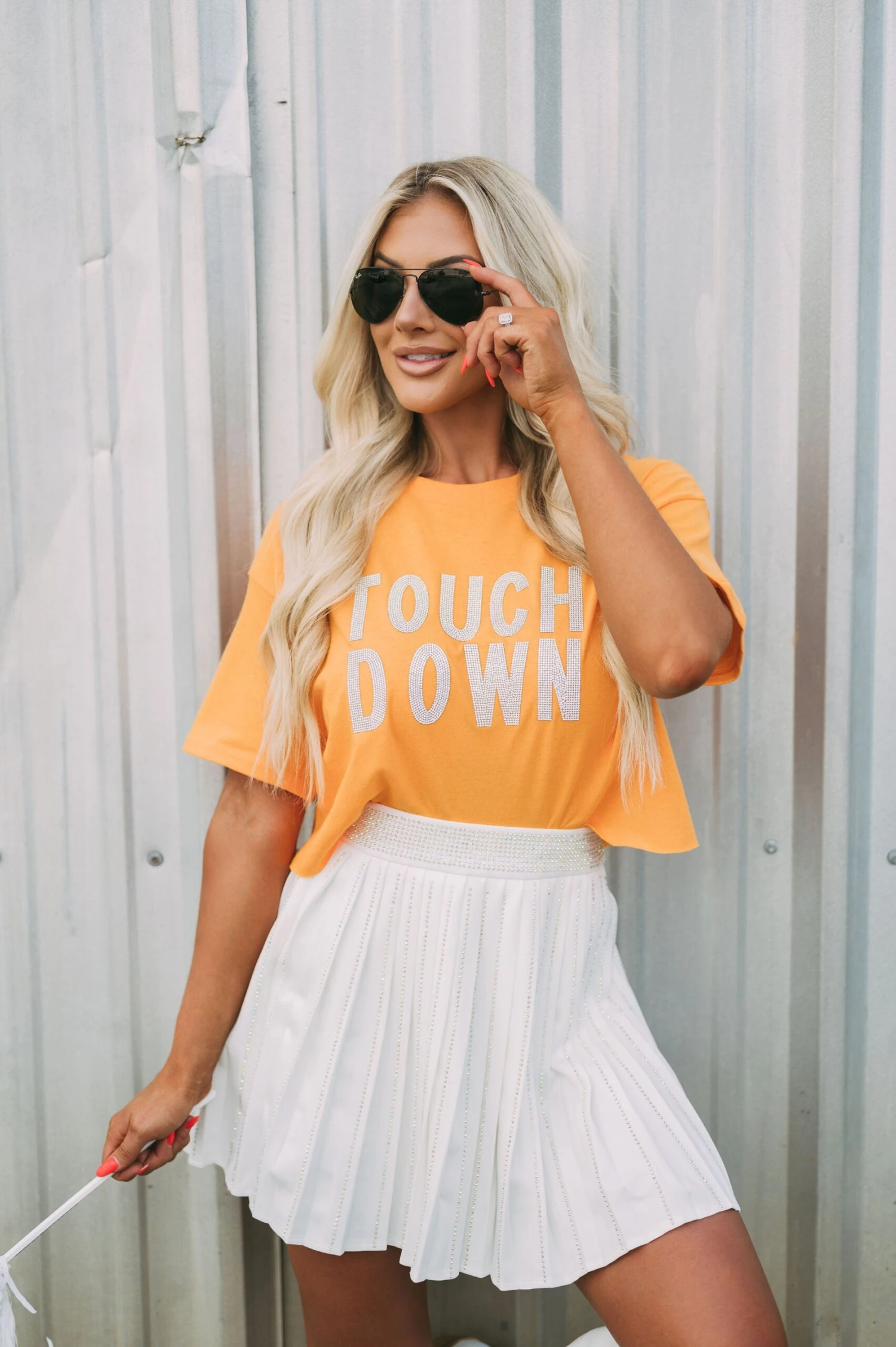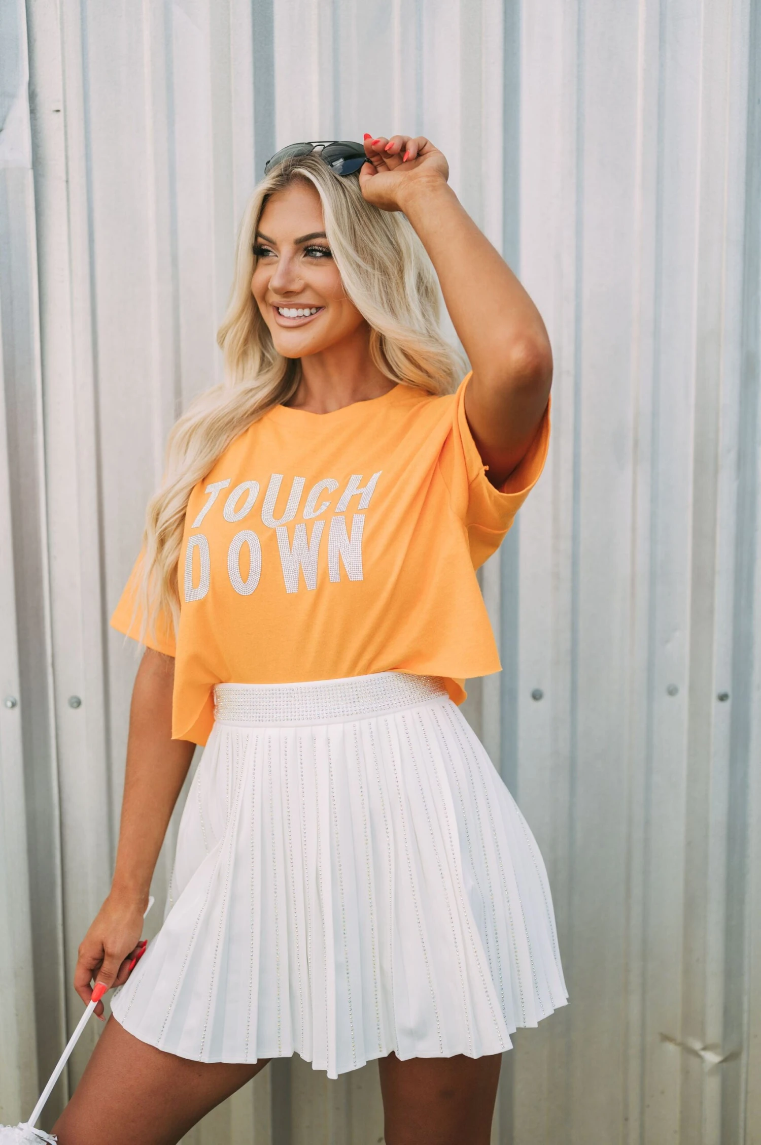 This high-waisted Pleated Embellished Skirt is crafted with a white pleated texture, with intricately designed iridescent rhinestone embellishments for an extra special touch. The zipper closure makes the skirt comfortable and secure to wear. Perfect for formal or casual wear!
