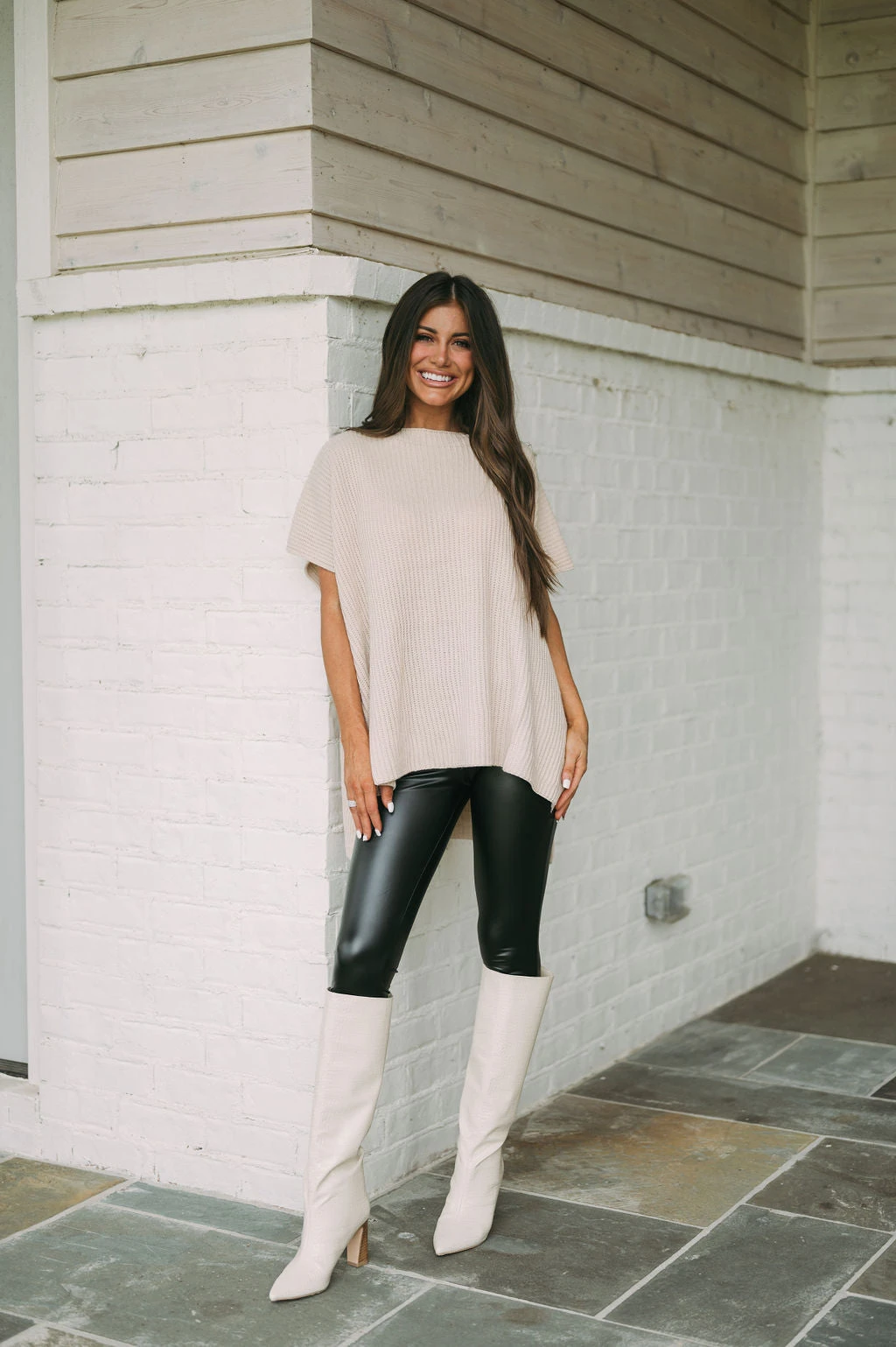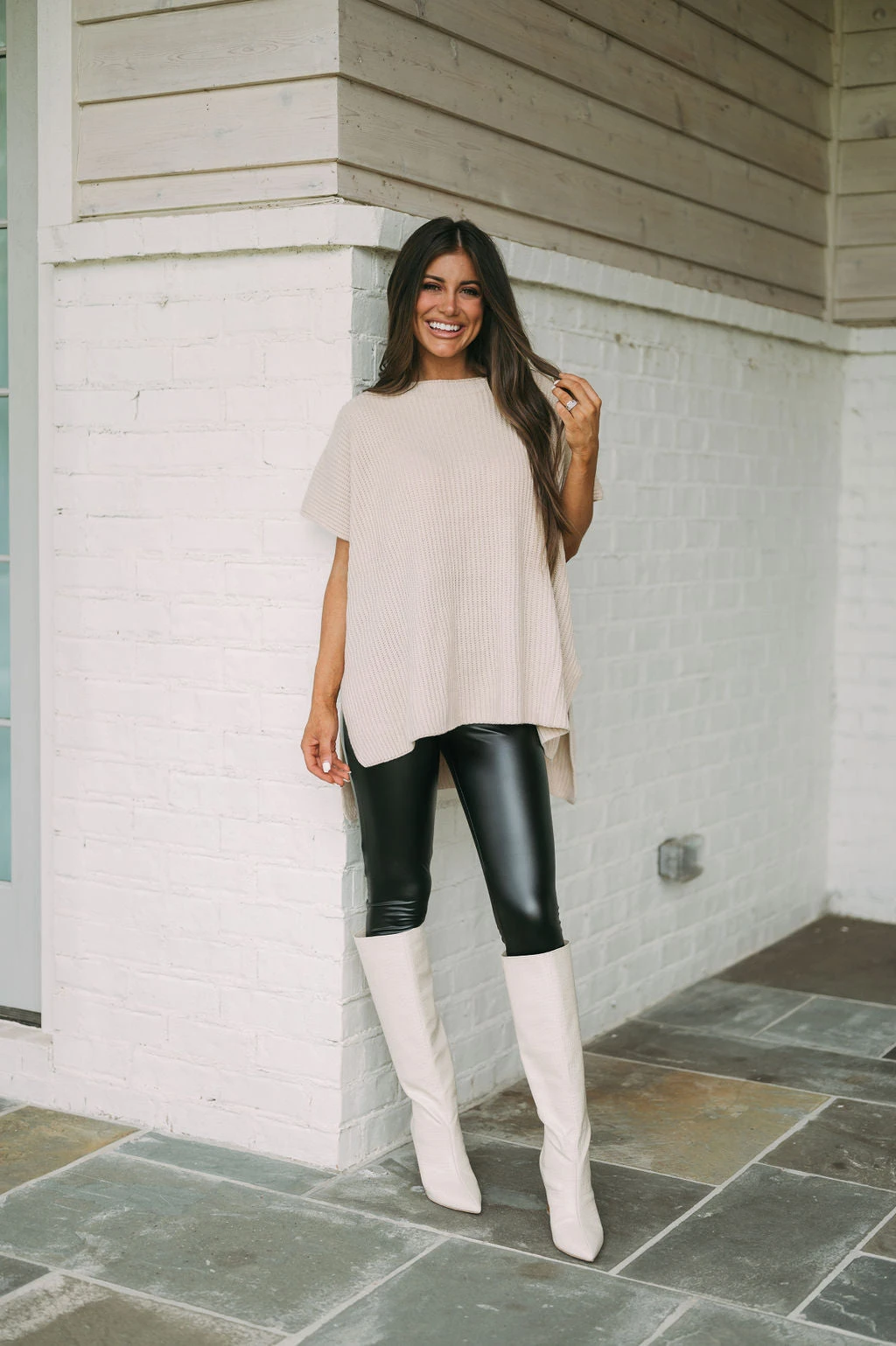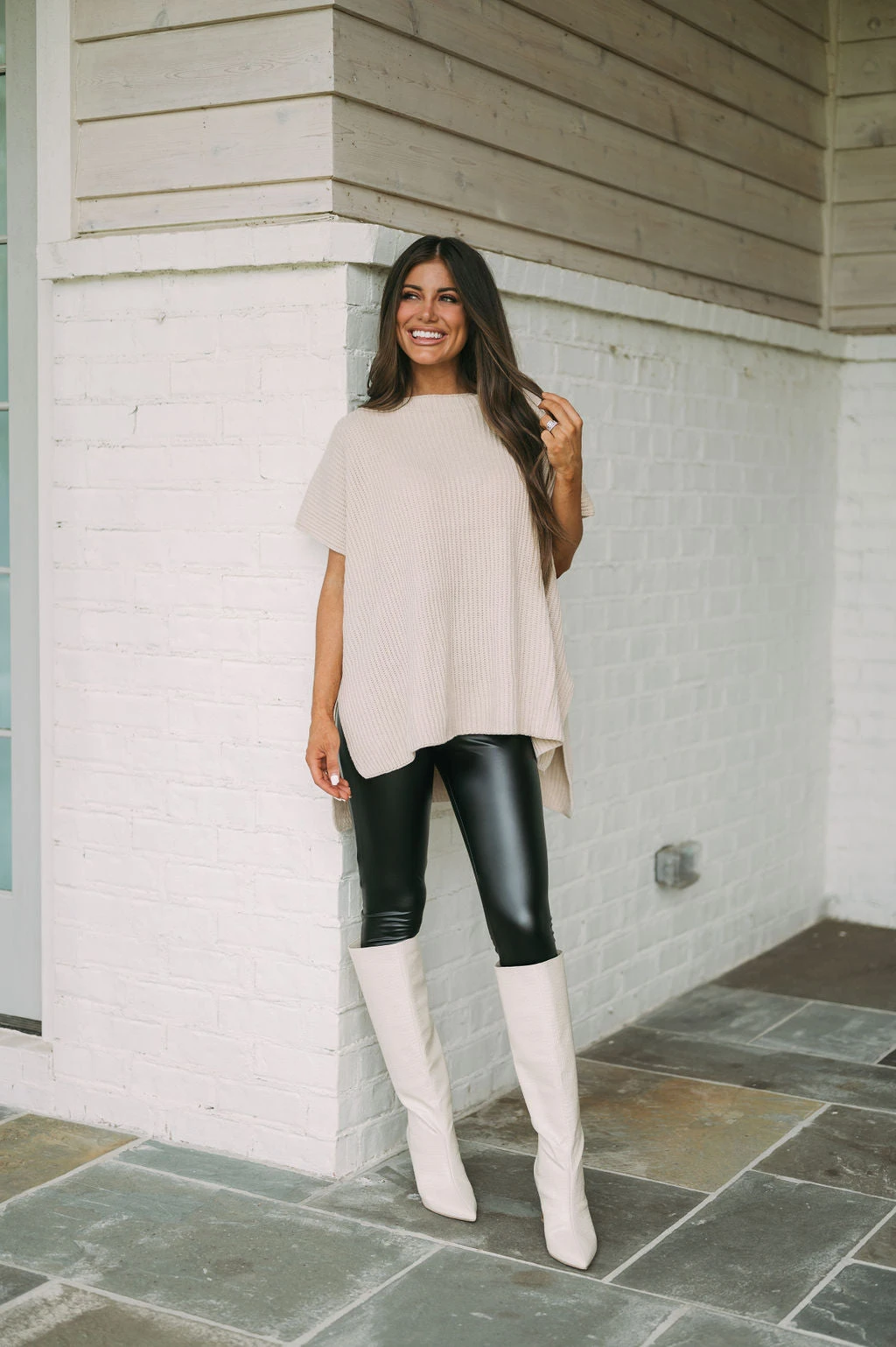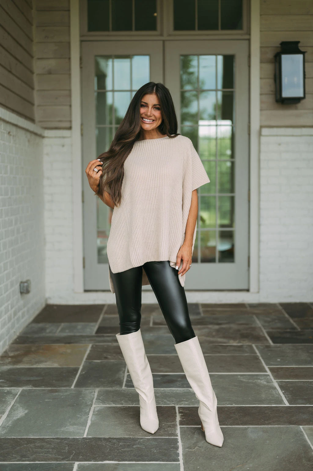 This oversized beige sweater is the perfect addition to any wardrobe. It has long sides with slits and is longer in the back. Wear it casually or dress it up, you’ll be sure to stay warm and cozy in style.