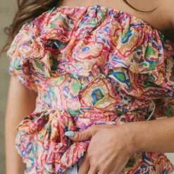 - Model is 5’4″ with a 25″ waist and 38″ hips and wearing a size 25.
