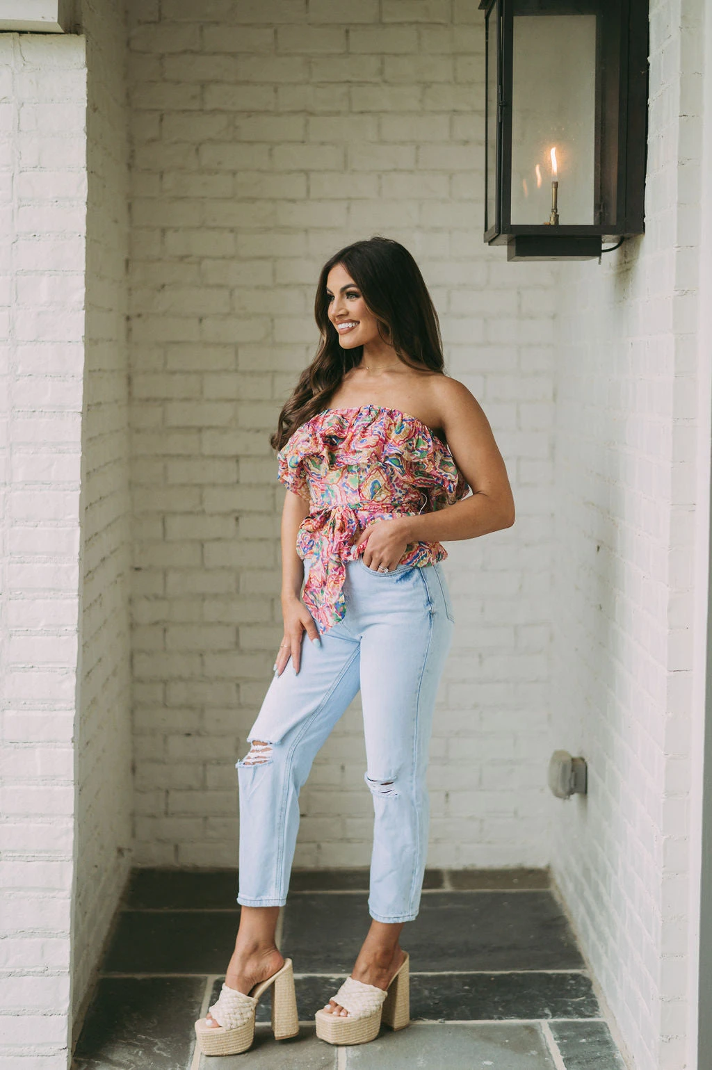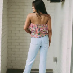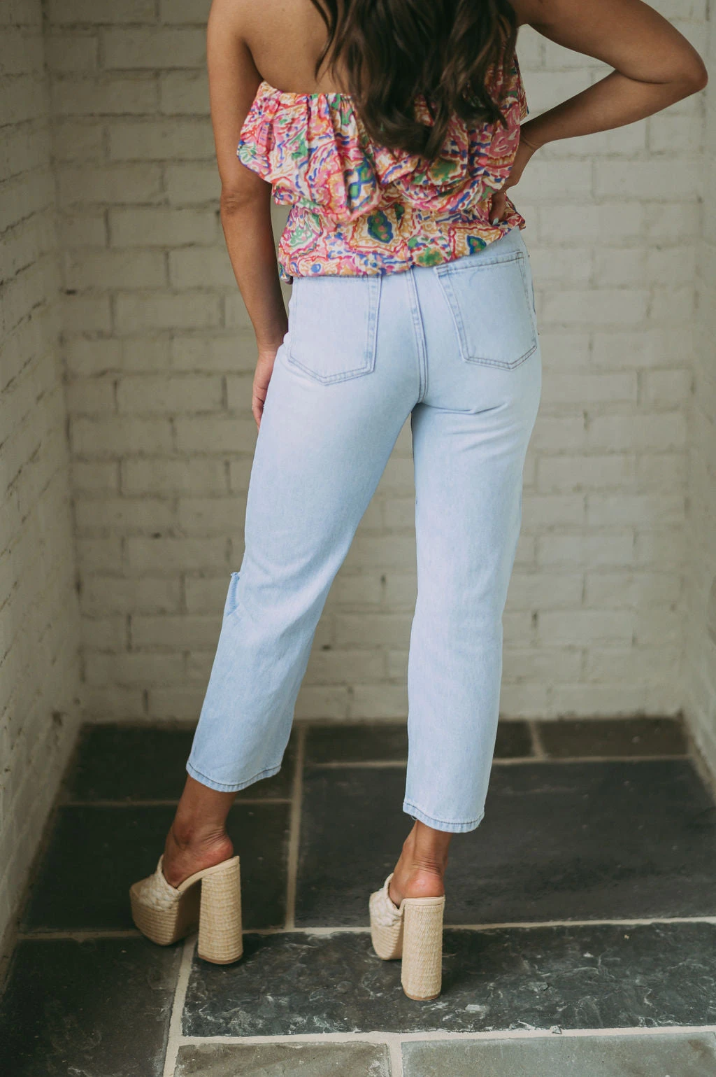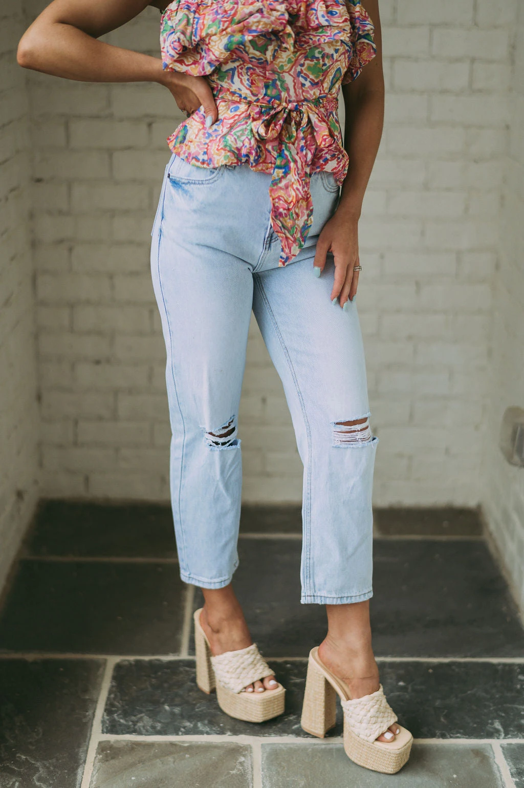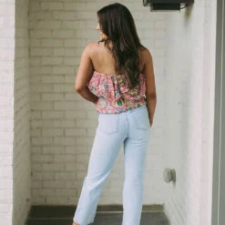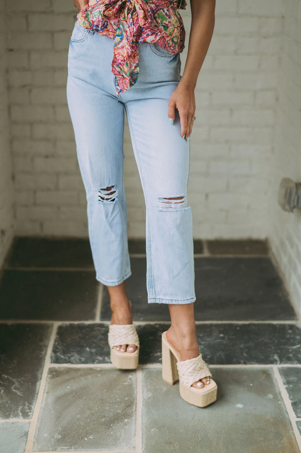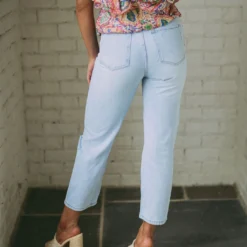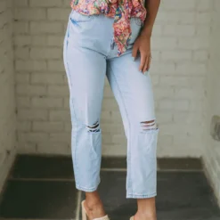 - These Presley Cropped Jeans feature a light wash, high waistline, cropped legs, and distressed detailing to offer a classic, distressed look. Crafted from premium materials, these jeans provide a comfortable and stylish fit!