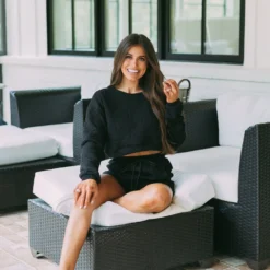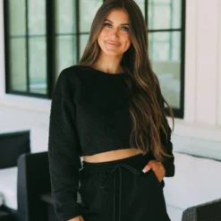 This Quilted LS Shorts Set- Black is the perfect way to stay comfortable and stylish. The set features a black long sleeve top and quilted drawstring tie shorts with side pockets. The quilted fabric looks great and provides a lightweight yet cozy feel. Whether at home or on the go, this shorts set is the perfect balance of form and function.