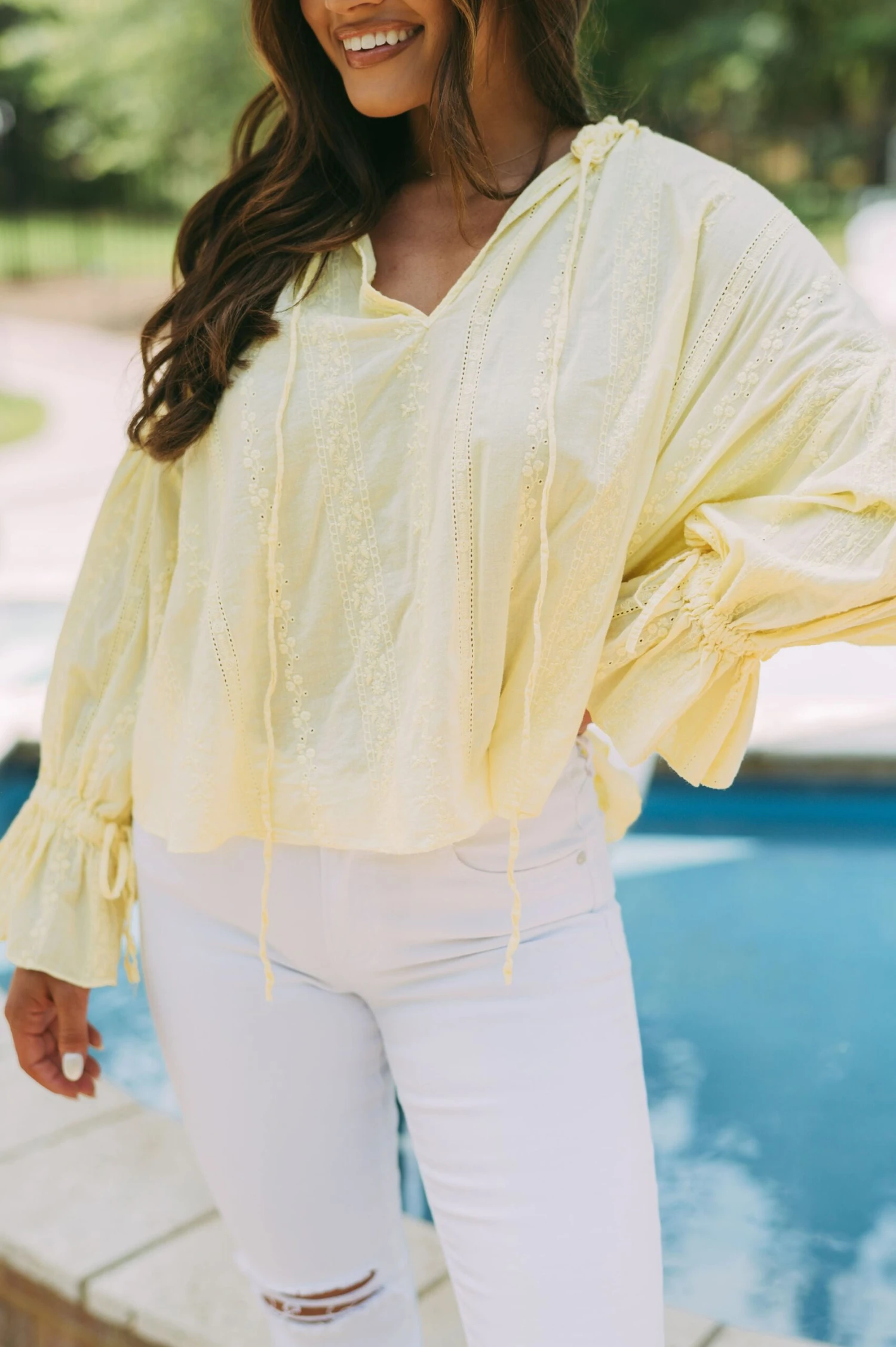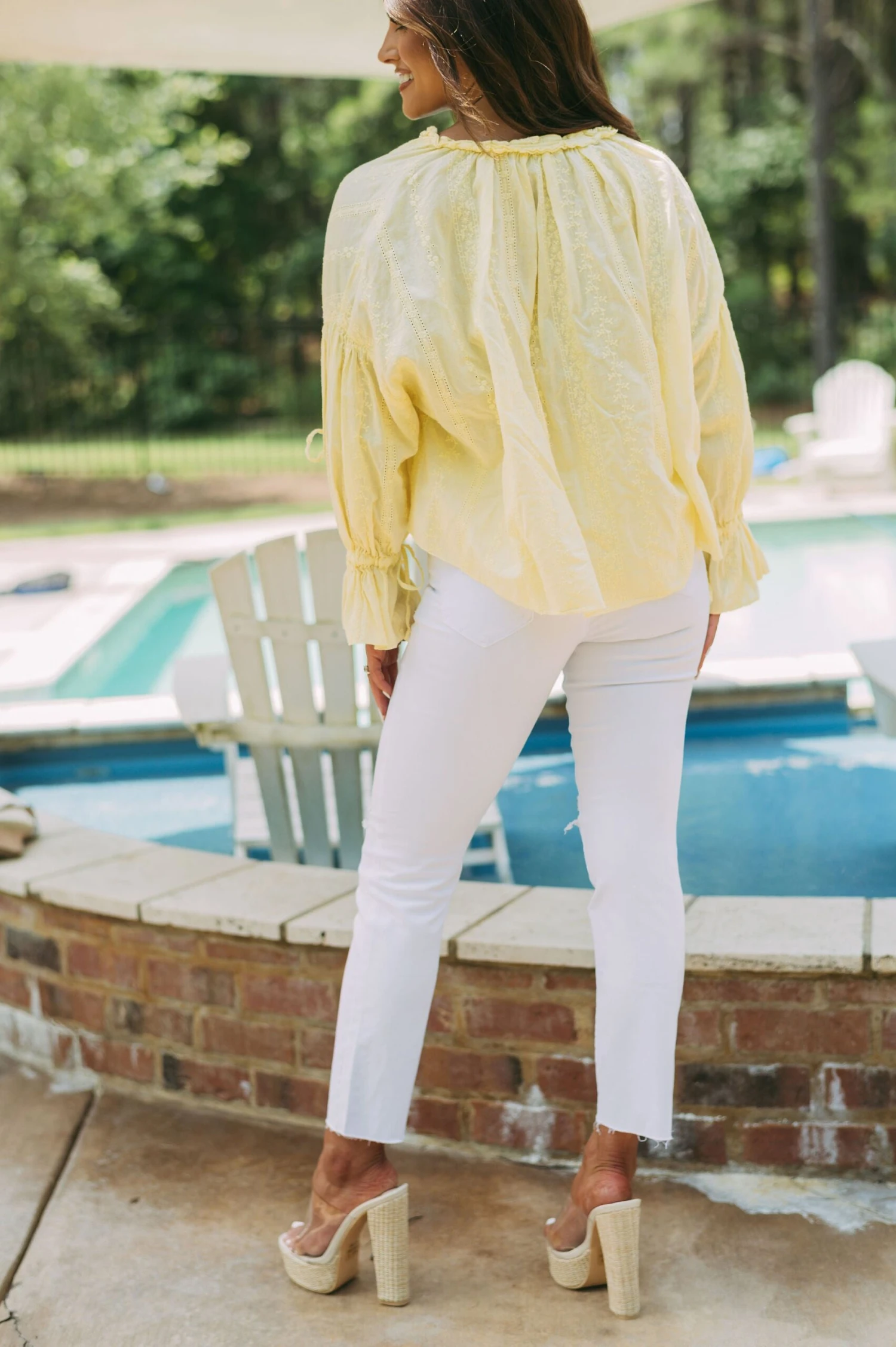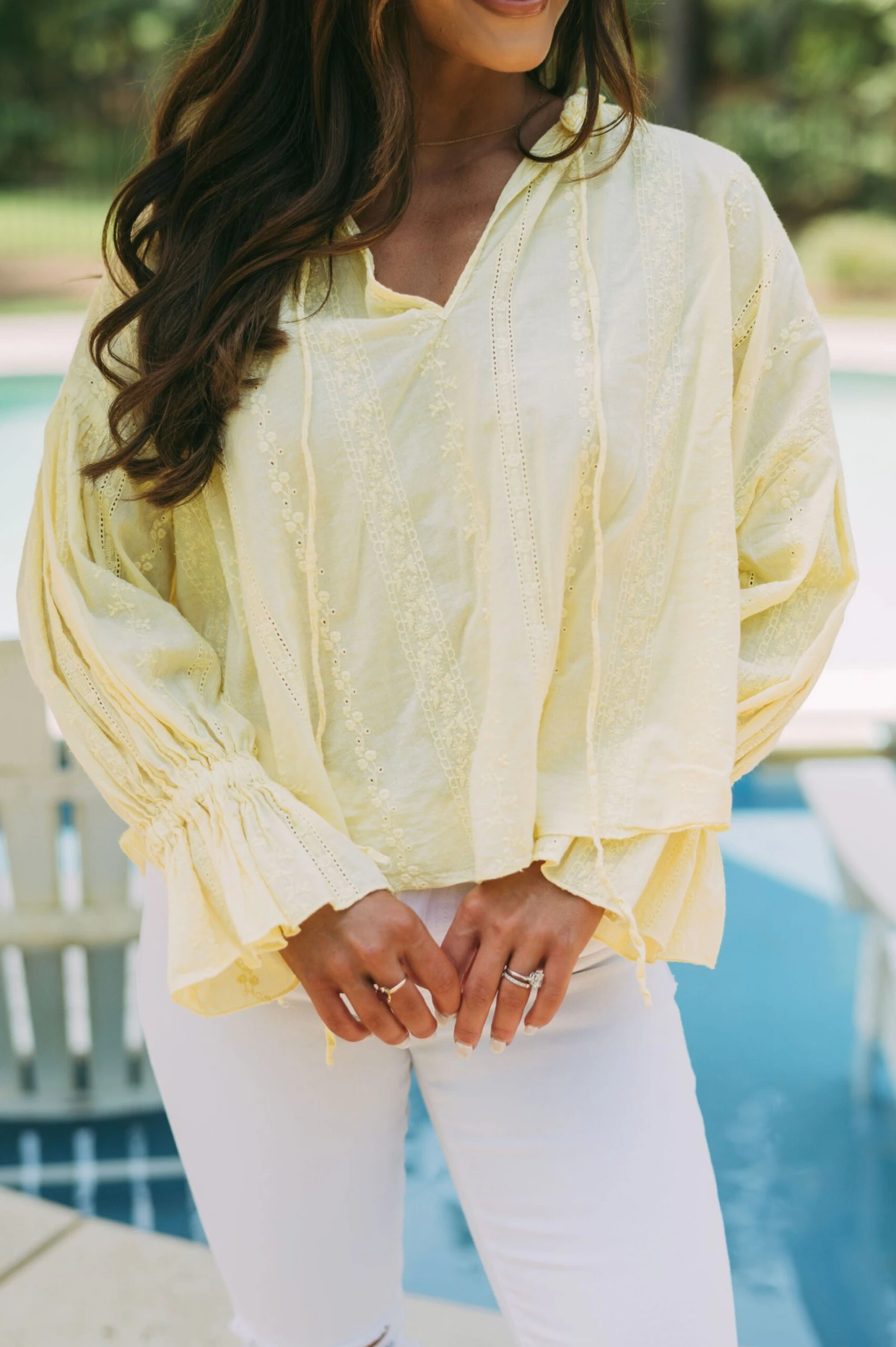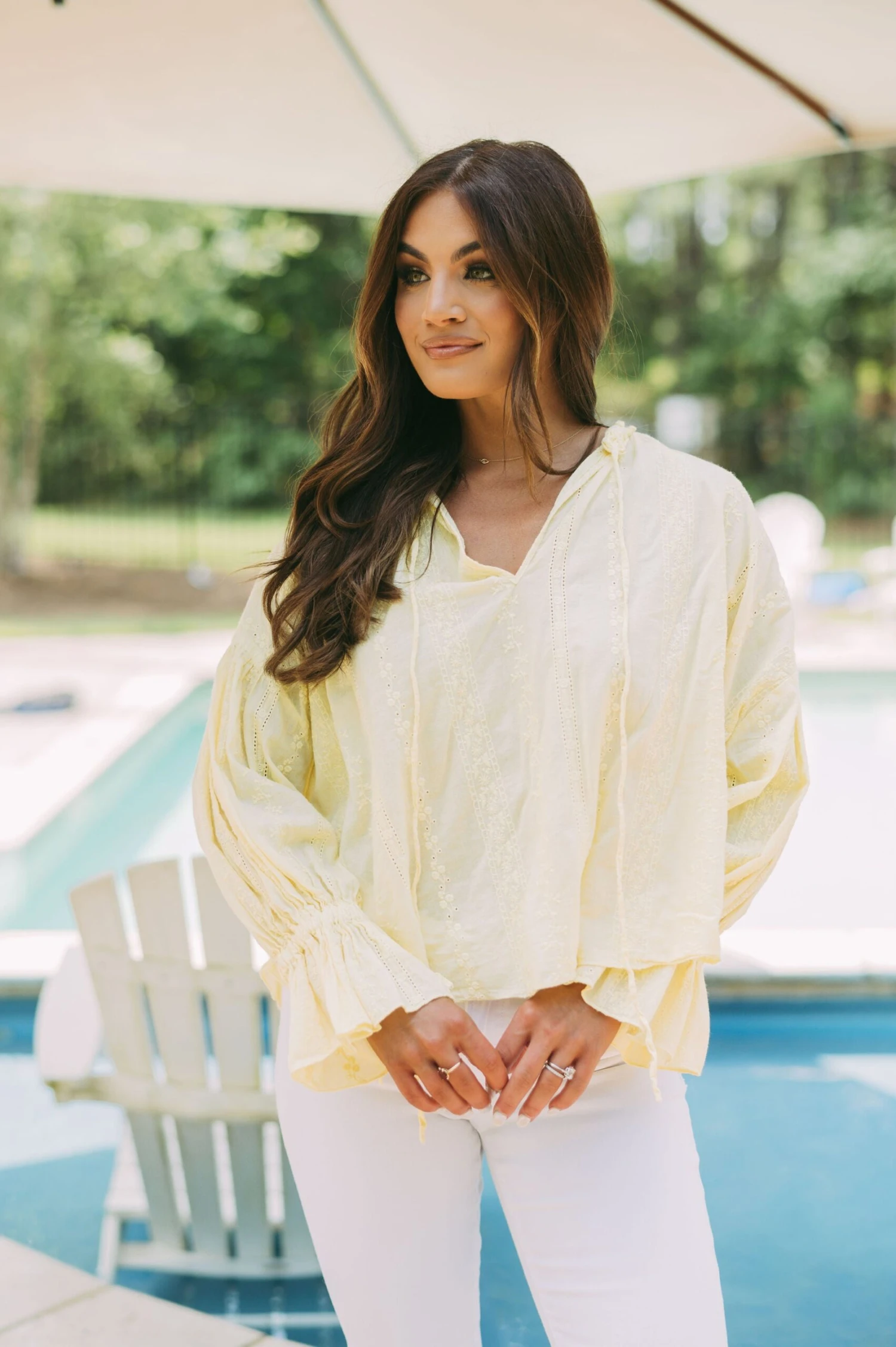- This Remy Eyelet Blouse is an elegant choice for any wardrobe. The bright yellow hue and eyelet material bring a tactile and cheerful quality to the design. Puff sleeves complete the look, bringing a playful yet timeless feel that is sure to liven up any ensemble.