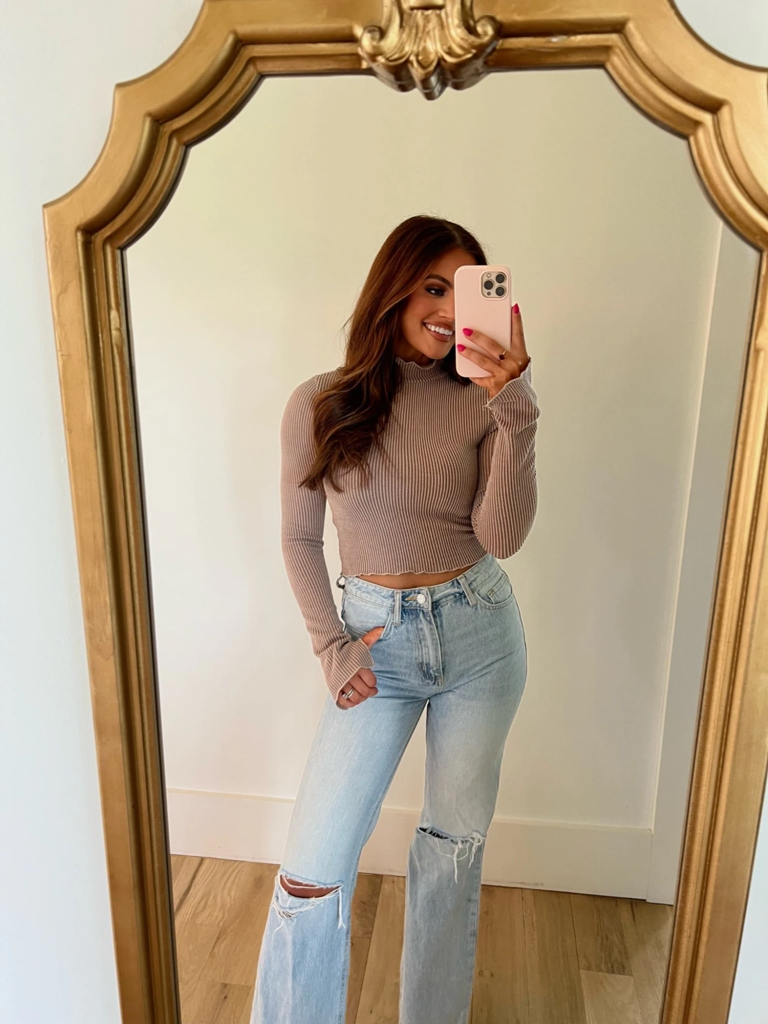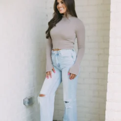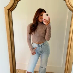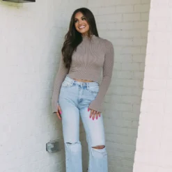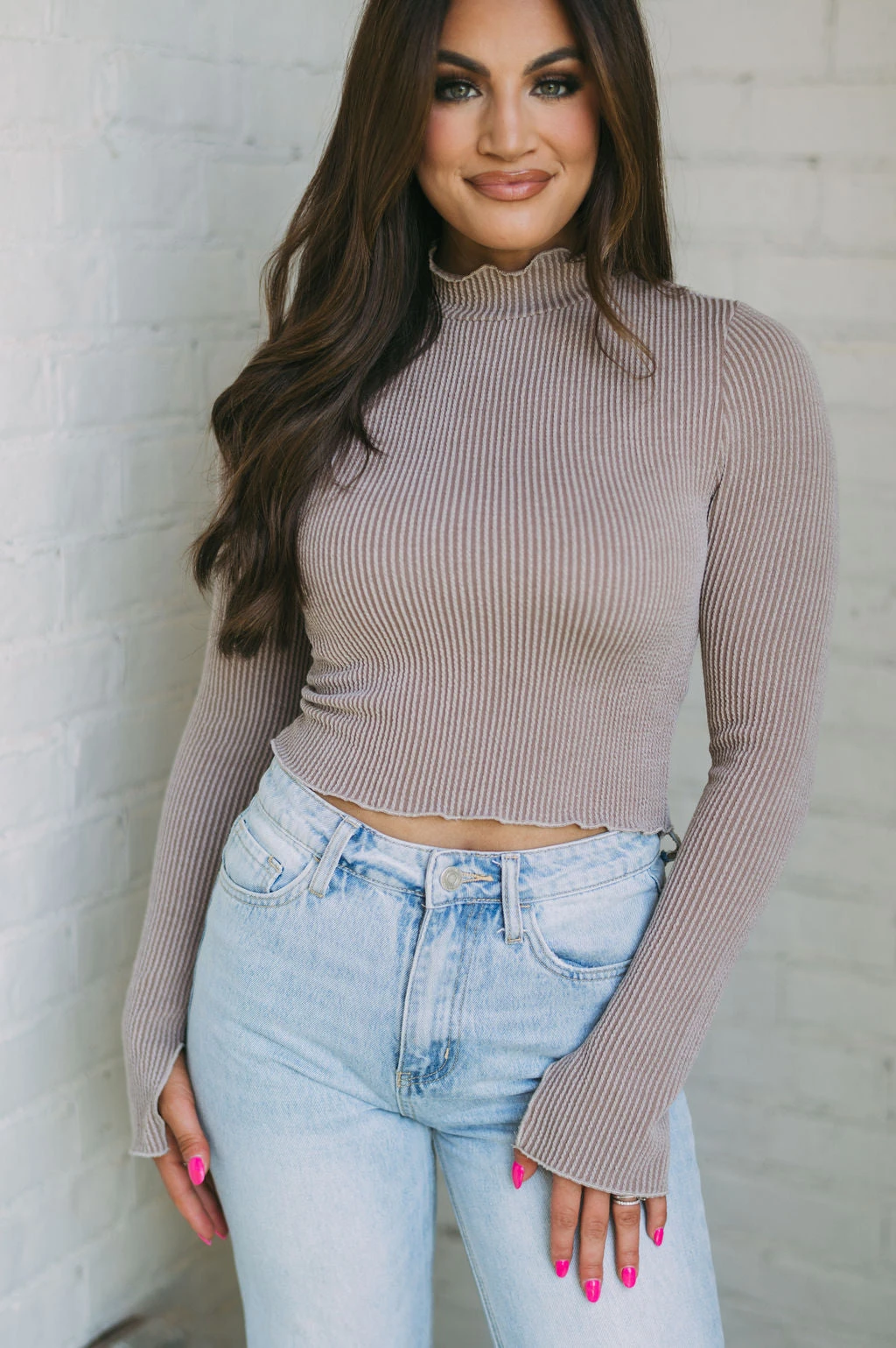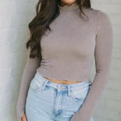 This ribbed mock neck top is perfect for those cool days when you want to look your best. Its cozy mocha hue pairs perfectly with the stretchy, cropped silhouette and long sleeves. Enjoy the feel of the luxuriously ribbed fabric, and look effortlessly stylish!