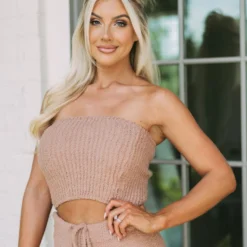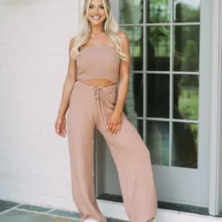 This Soft Knitted Tube Top & Pants Set-Mocha is perfect for days you want to look incredible! The mocha sweater knit creates a beautiful look, while the cropped tube top and high waisted pants with a drawstring waistline provide comfort with a stylish edge!