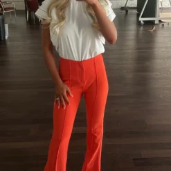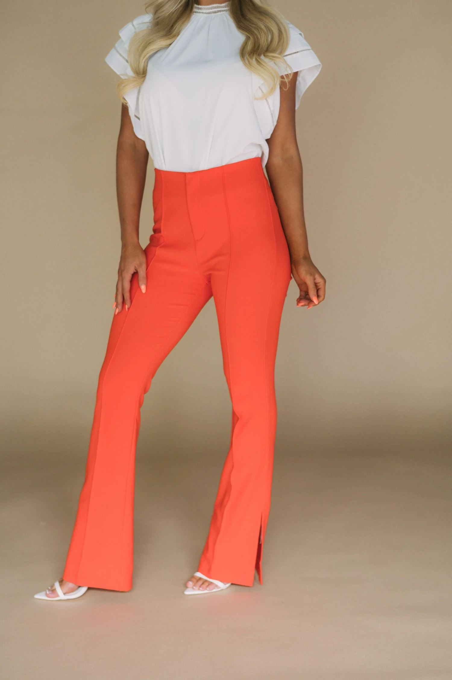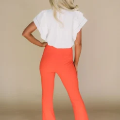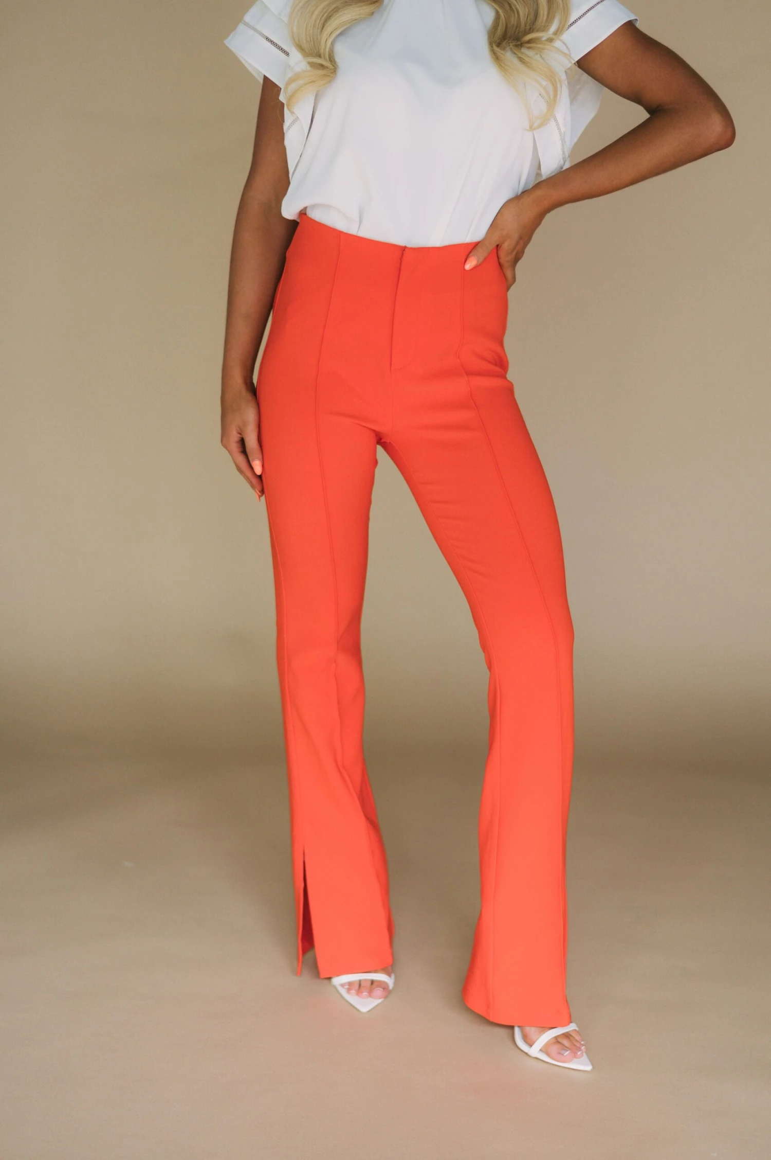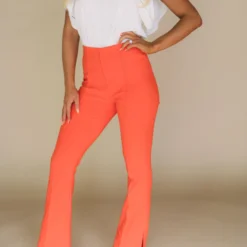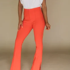 Take your wardrobe to the next level with these Spicy Orange Side Slit Pants. Crafted from a premium stretchy fabric, these high waisted pants feature a unique side slit detail with front seam and zipper closure front for a modern look with maximum comfort.