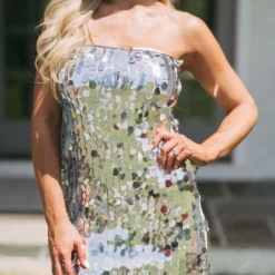 Strapless Disc Dress-Silver