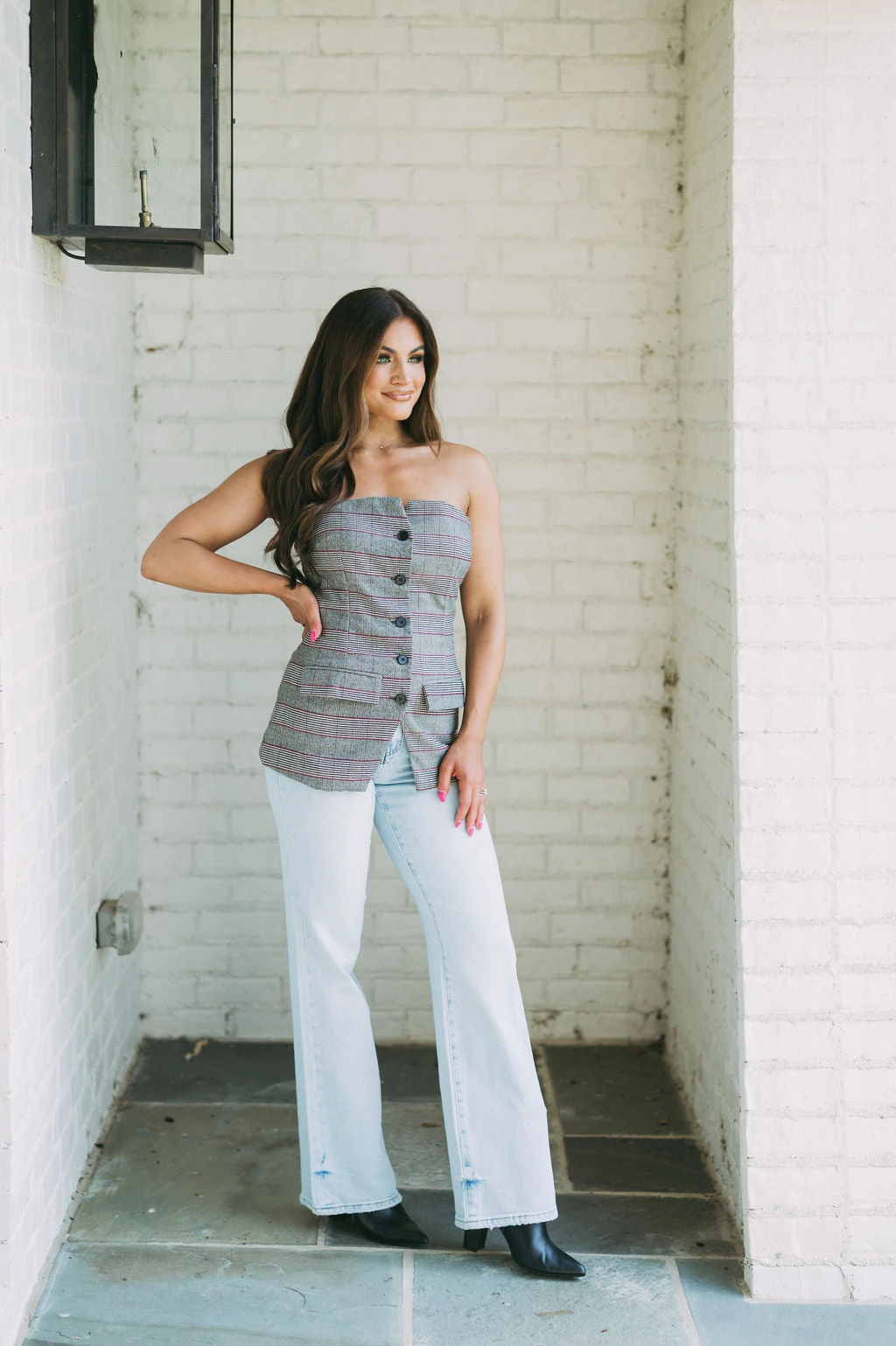 Be the first to review “Strapless Plaid Button Up Top” Cancel reply