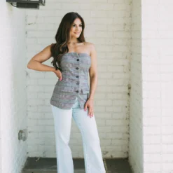 Look fashionable all-season in our Striped Sleeveless Sweater! With its slightly cropped boxy fit, this unique design showcases a classic grey and camel striped style that will never go out of fashion!