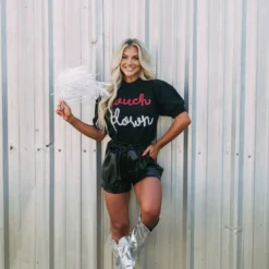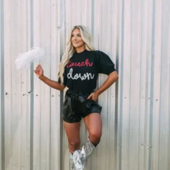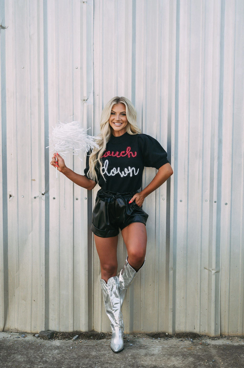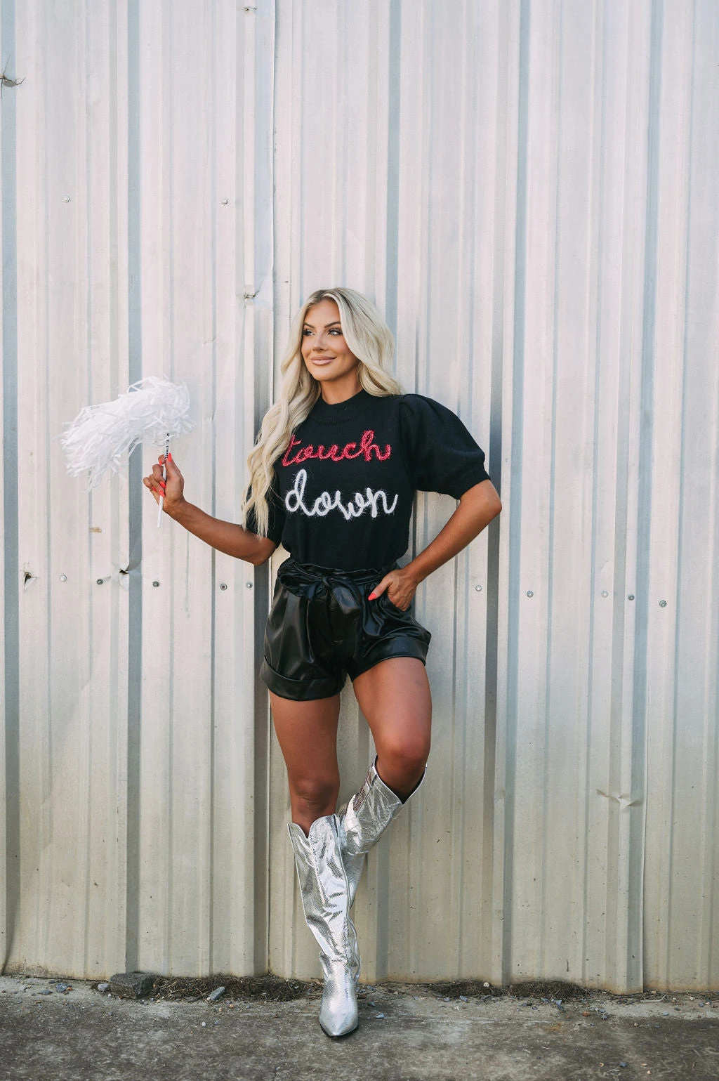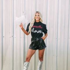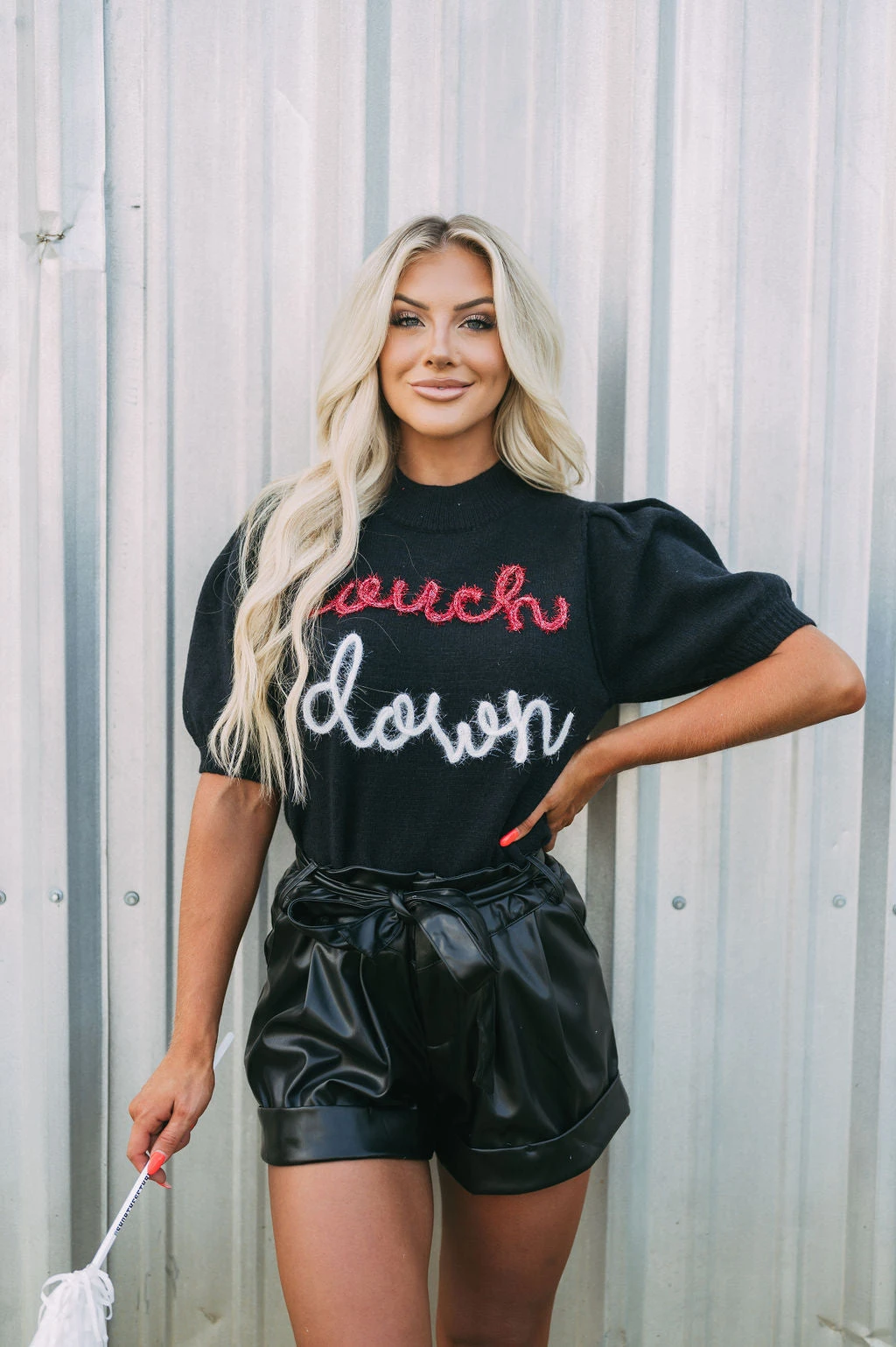 Get game-day ready in this cute sweater top! The Touchdown Puff Sleeve Sweater radiates comfort and luxe style. Its mock neckline, ribbed trim, and eye-catching “touchdown” in red and white sparkles bring fashion and fun together.