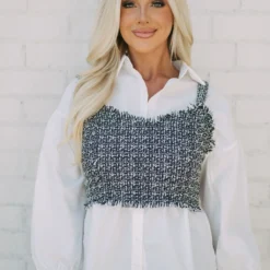 Be the first to review “Tweed Button Down Combo Top- Black/White” Cancel reply