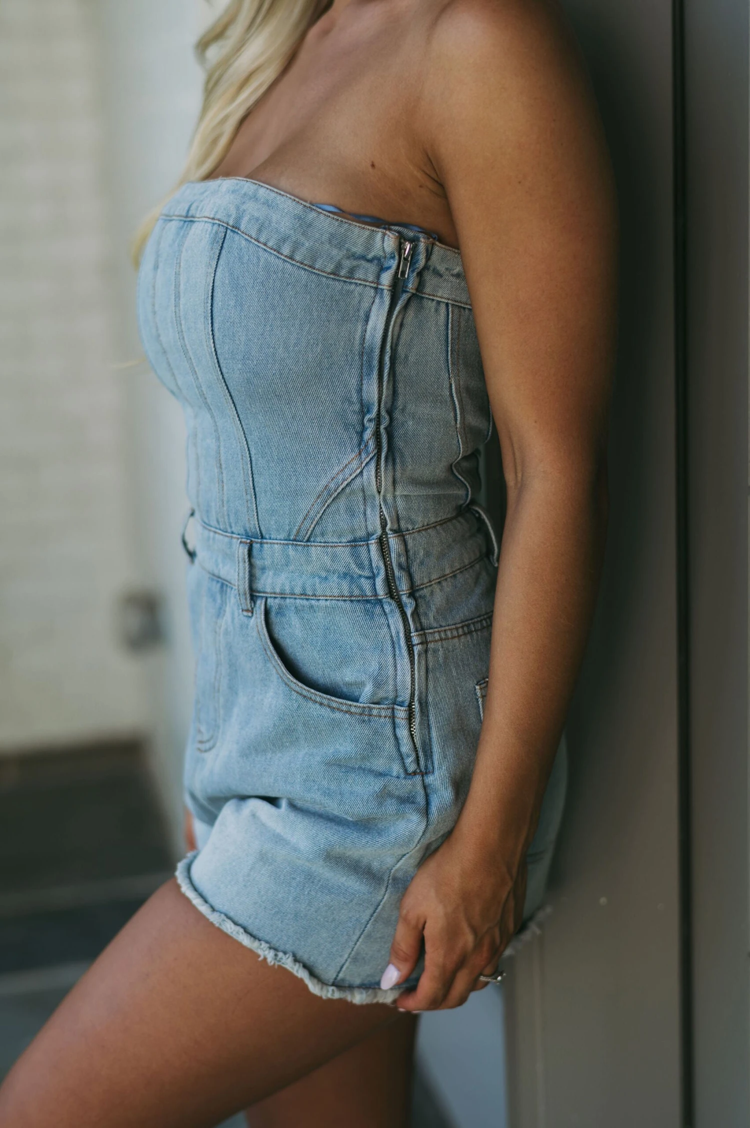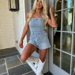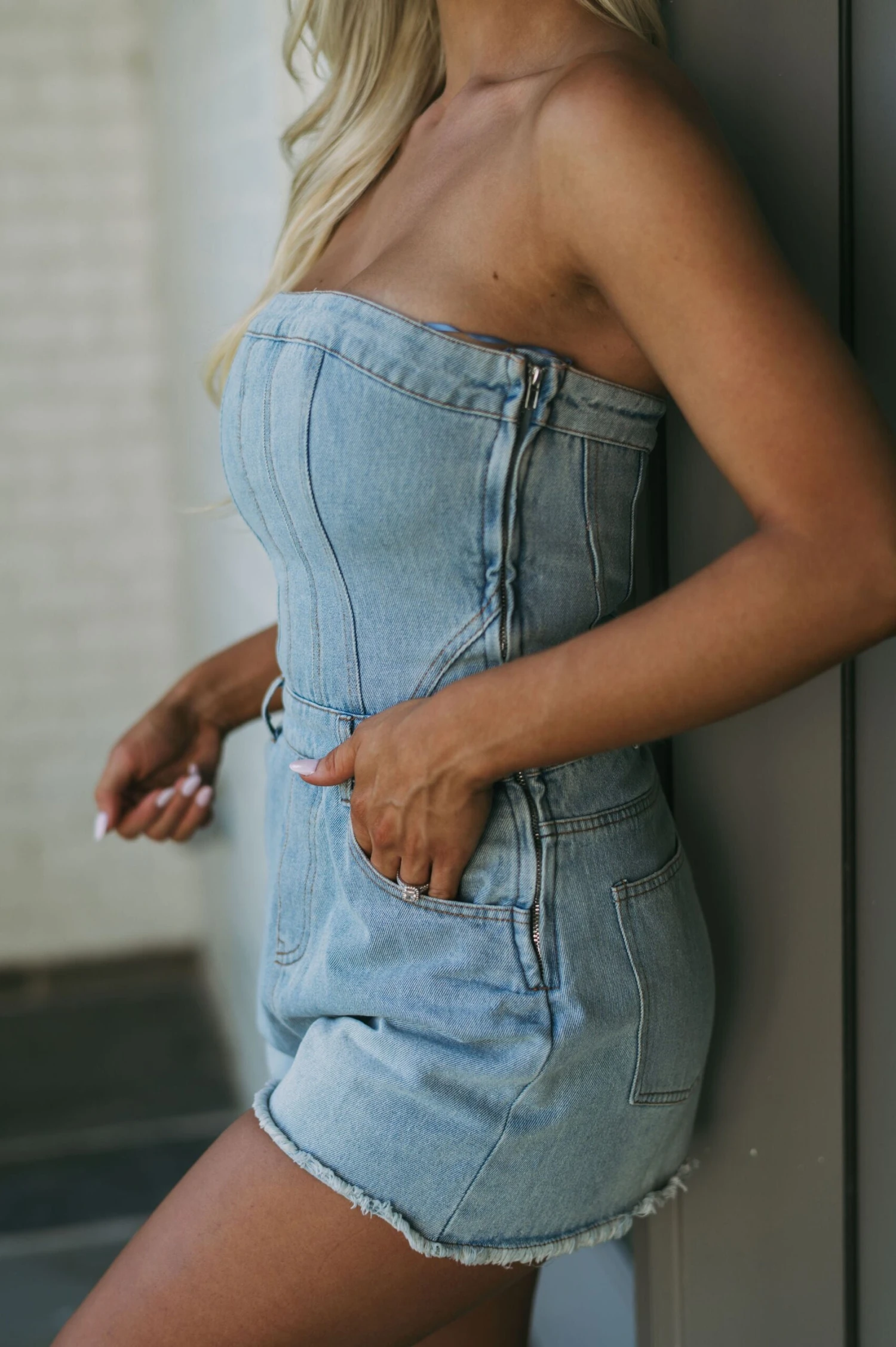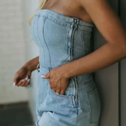 - Turn heads in this stylish Veronica Denim Corset Romper. This strapless romper is made from denim and features a side zipper closure, frayed bottom hem, side pockets, and a corset style bodice – making it perfect for a night out! Look your best while remaining comfortable and confident – wear the Veronica Denim Corset Romper!