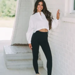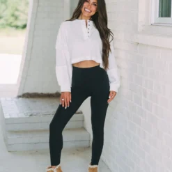 - Beautifully designed with a waffle knit, this white crop sweater is perfect for any season. Featuring a relaxed fit and stylish button up accents, this sweater will confidently take you from day to night. Look and feel your best!