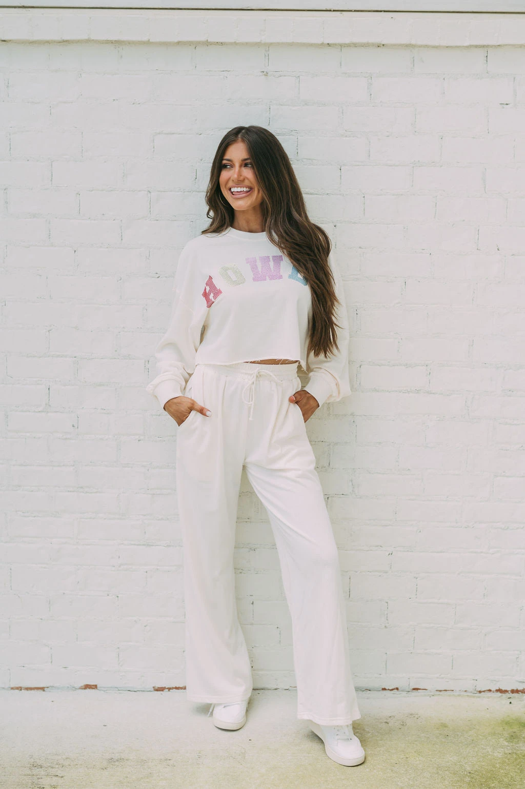 Unwind in style with these Wide Leg Drawstring Pants-Ivory. Crafted in ivory, these lounge pants feature a high waisted drawstring tie waistband for an adjustable and comfortable fit and pockets for practical storage. The wide legs complete the classic look. Relax in complete comfort!