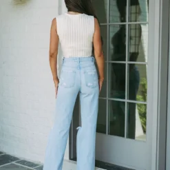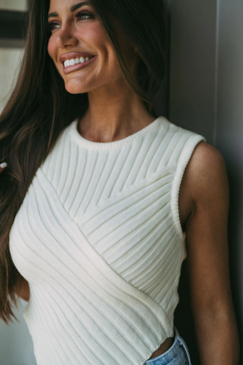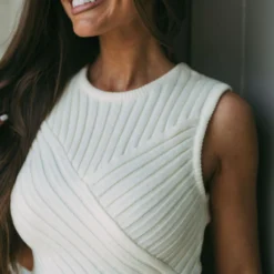 The Zoe Sleeveless Sweater Top- Ivory is the perfect addition to your wardrobe. Crafted from a lightweight knit fabric, this stretchy top has a rounded neckline and a v bottom hem. Enjoy all-day comfort while looking stylish and chic.